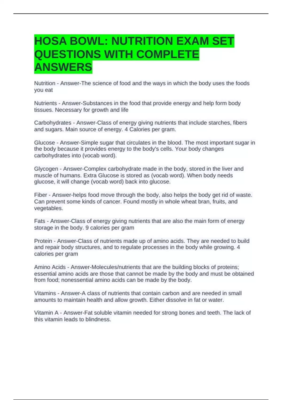 Nutrition - Answer-The science of food and the ways in which the body uses the foods