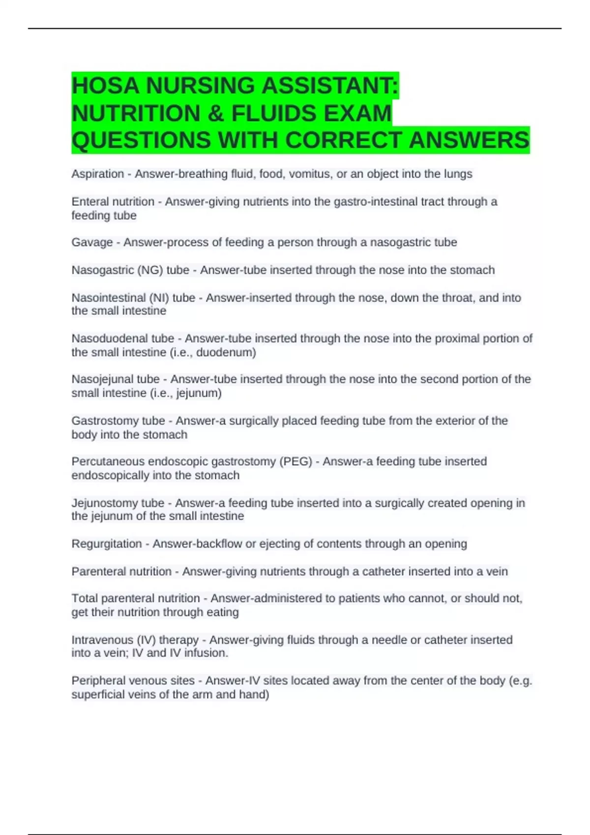 Intravenous (IV) therapy - Answer-giving fluids through a needle or catheter inserted