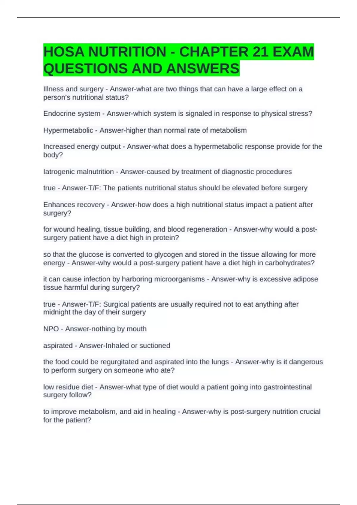 HOSA NUTRITION - CHAPTER 21 EXAM