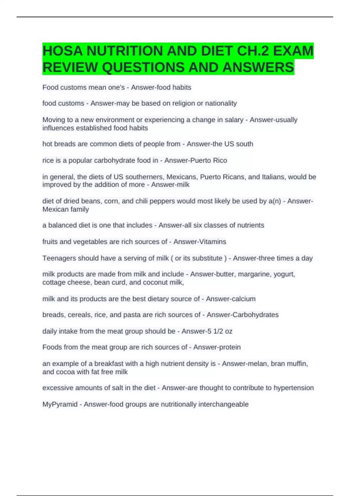 HOSA NUTRITION AND DIET CH.2 EXAM