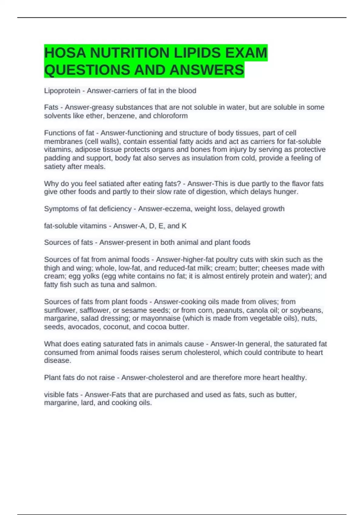 Most lipids in the body are - Answer-(95%) triglycerides. They are in body cells and