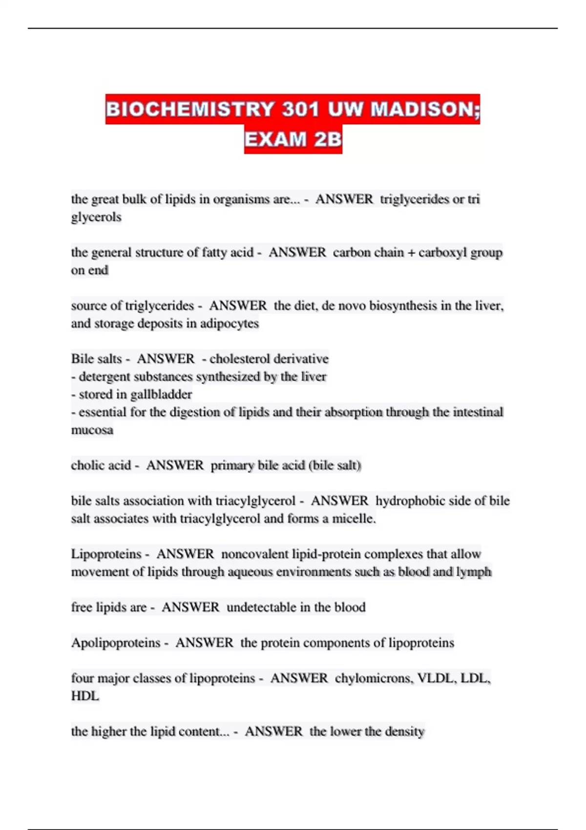 BIOCHEMISTRY 301 UW MADISON; EXAM 2B....