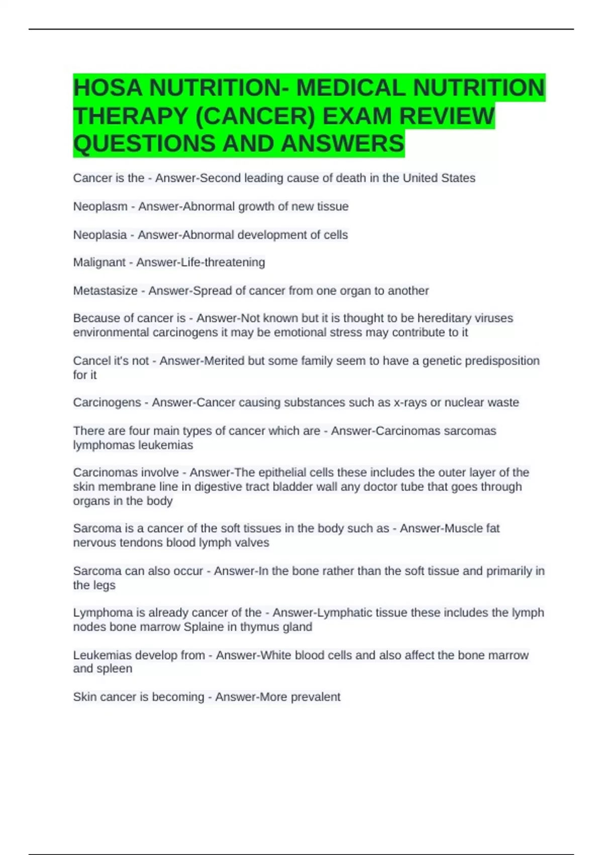 THERAPY (CANCER) EXAM REVIEW