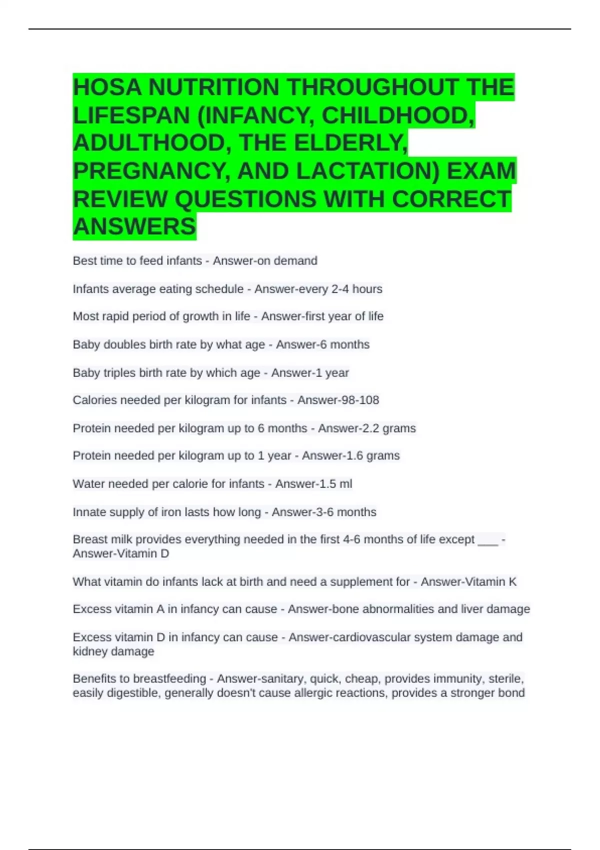 Time to introduce solid foods to infants - Answer-breast milk up until 4-6 months, and