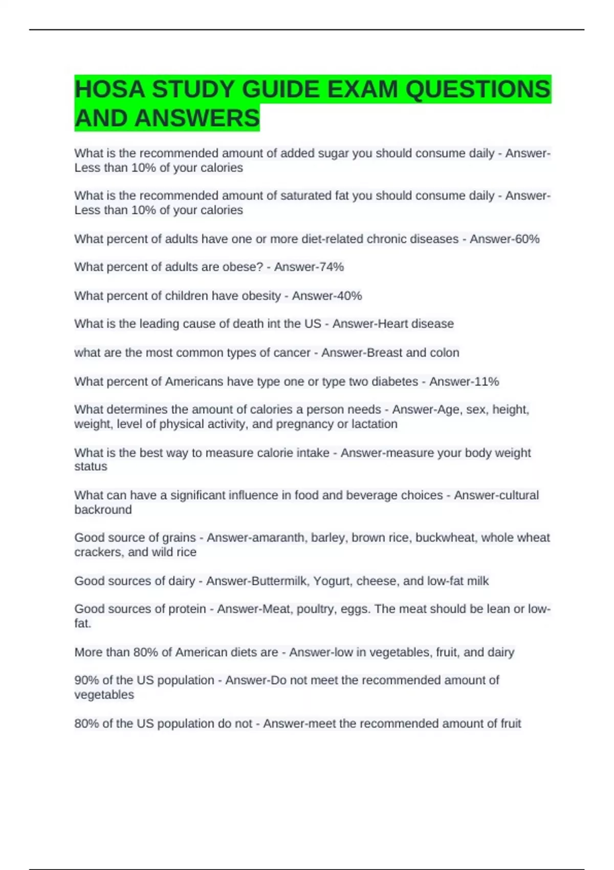 HOSA STUDY GUIDE EXAM QUESTIONS