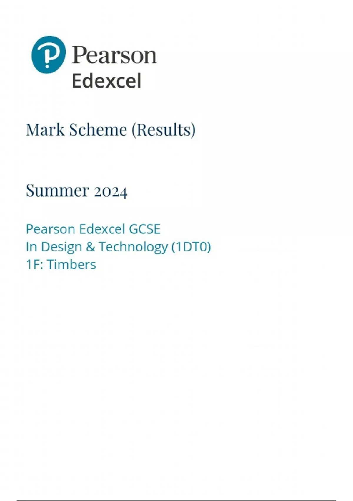 2024 EDEXCEL GCSE DESIGN AND TECHNOLOGY COMPONENT 1: TIMBERS INCLUDING MARK SCHEME