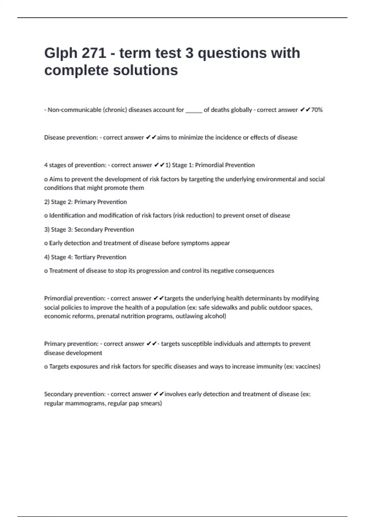 4 stages of prevention: - correct answer ✔✔1) Stage 1: Primordial Prevention