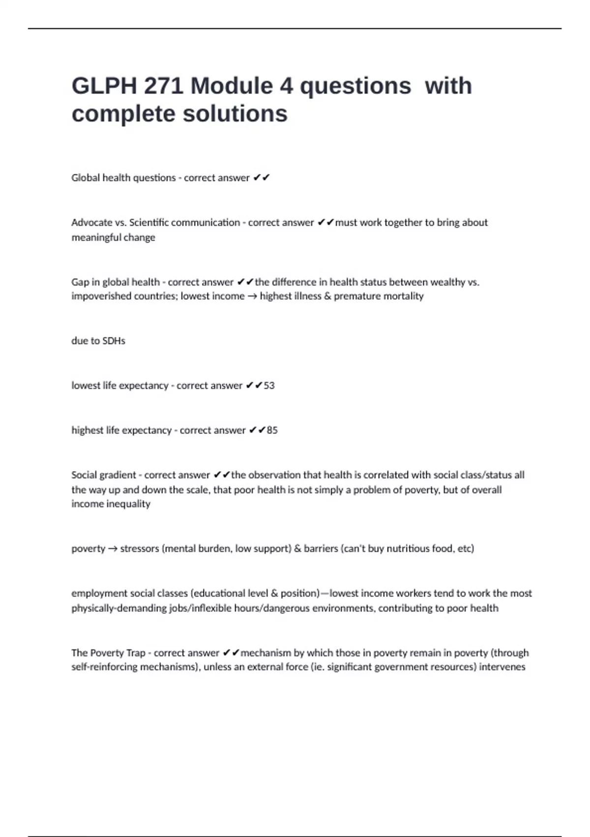 Gap in global health - correct answer ✔✔the difference in health status between wealthy vs.