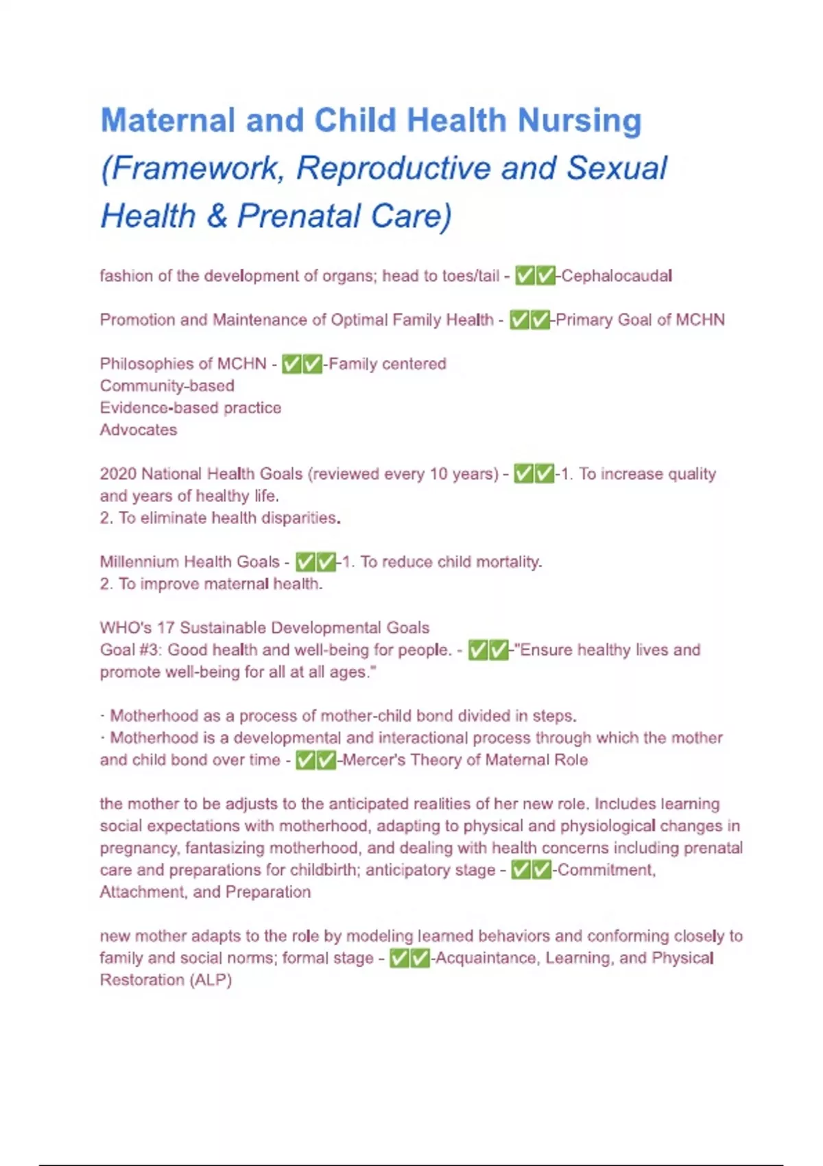 Maternal and Child Health Nursing (Framework, Reproductive and Sexual Health & Prenatal Care)