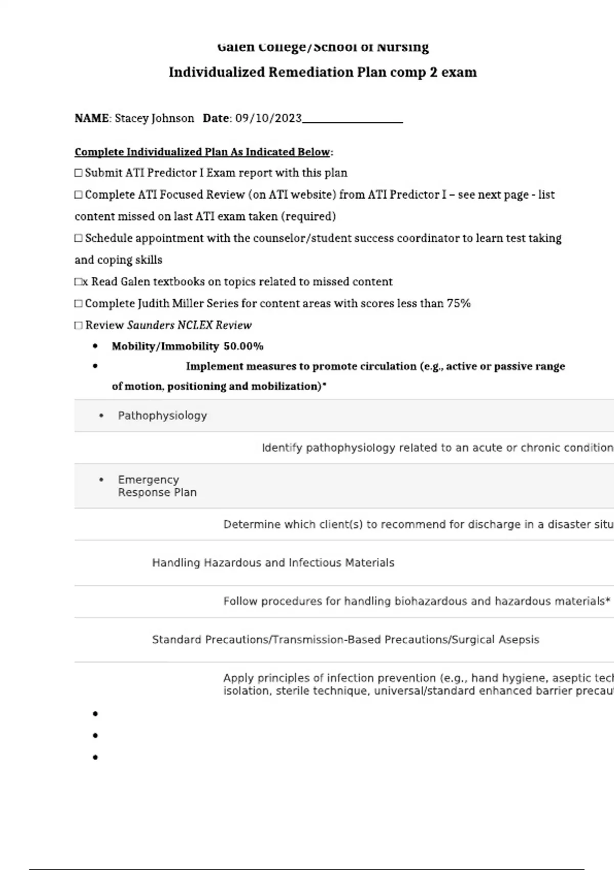 Galen College School of Nursing Individualized Remediation Plan comp 2 exam _ (Questions & answers) 2024/2025; 100% TRUSTED Complete, trusted solutions and explanations.
