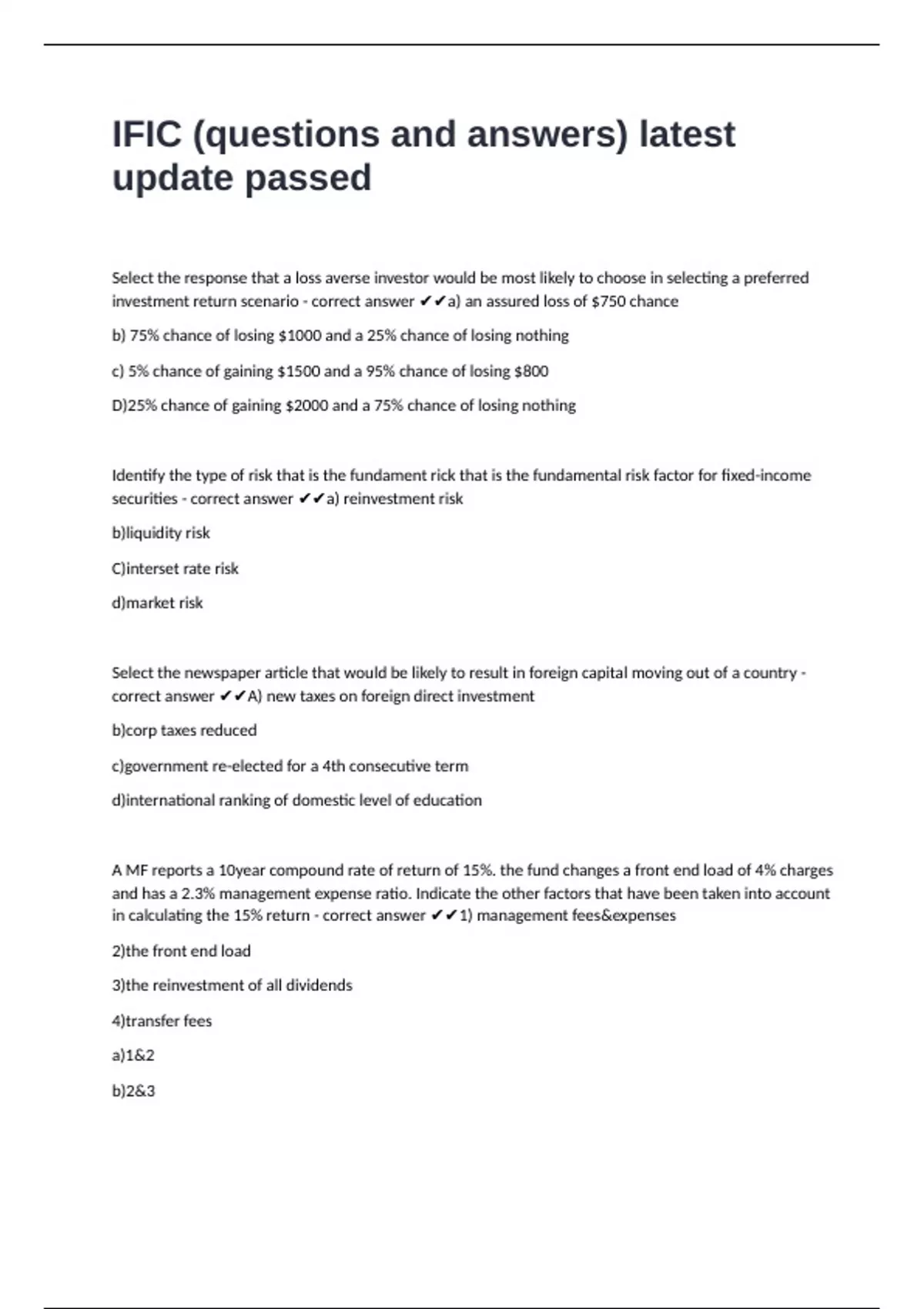investment return scenario - correct answer ✔✔a) an assured loss of $750 chance