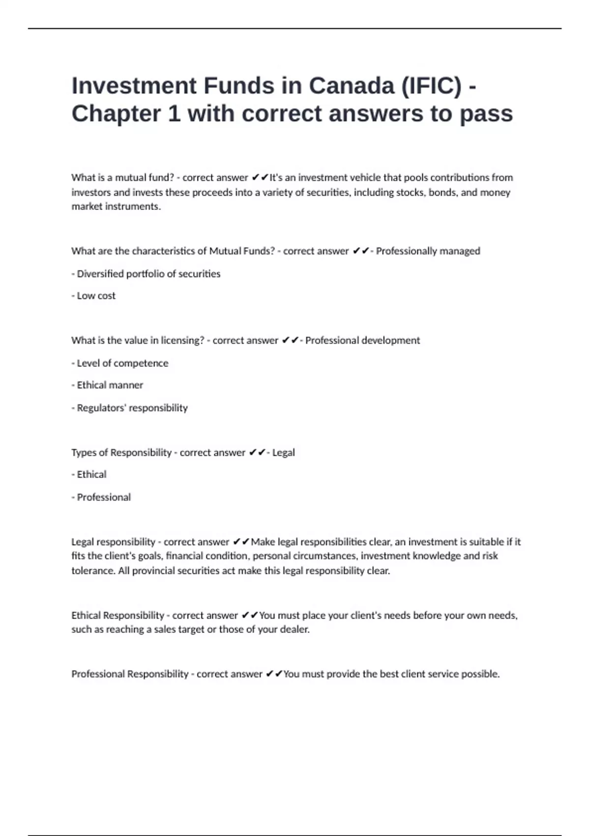 Legal responsibility - correct answer ✔✔Make legal responsibilities clear, an investment is suitable if it