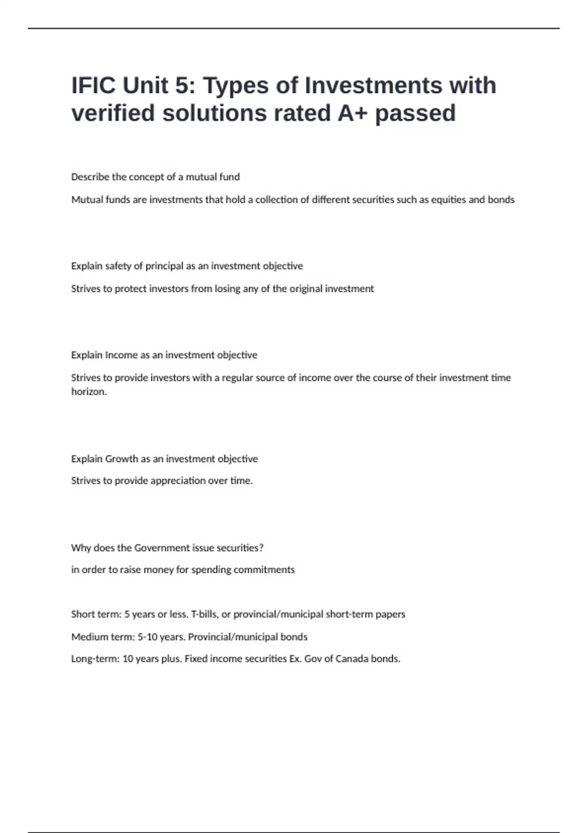 Short term: 5 years or less. T-bills, or provincial/municipal short-term papers