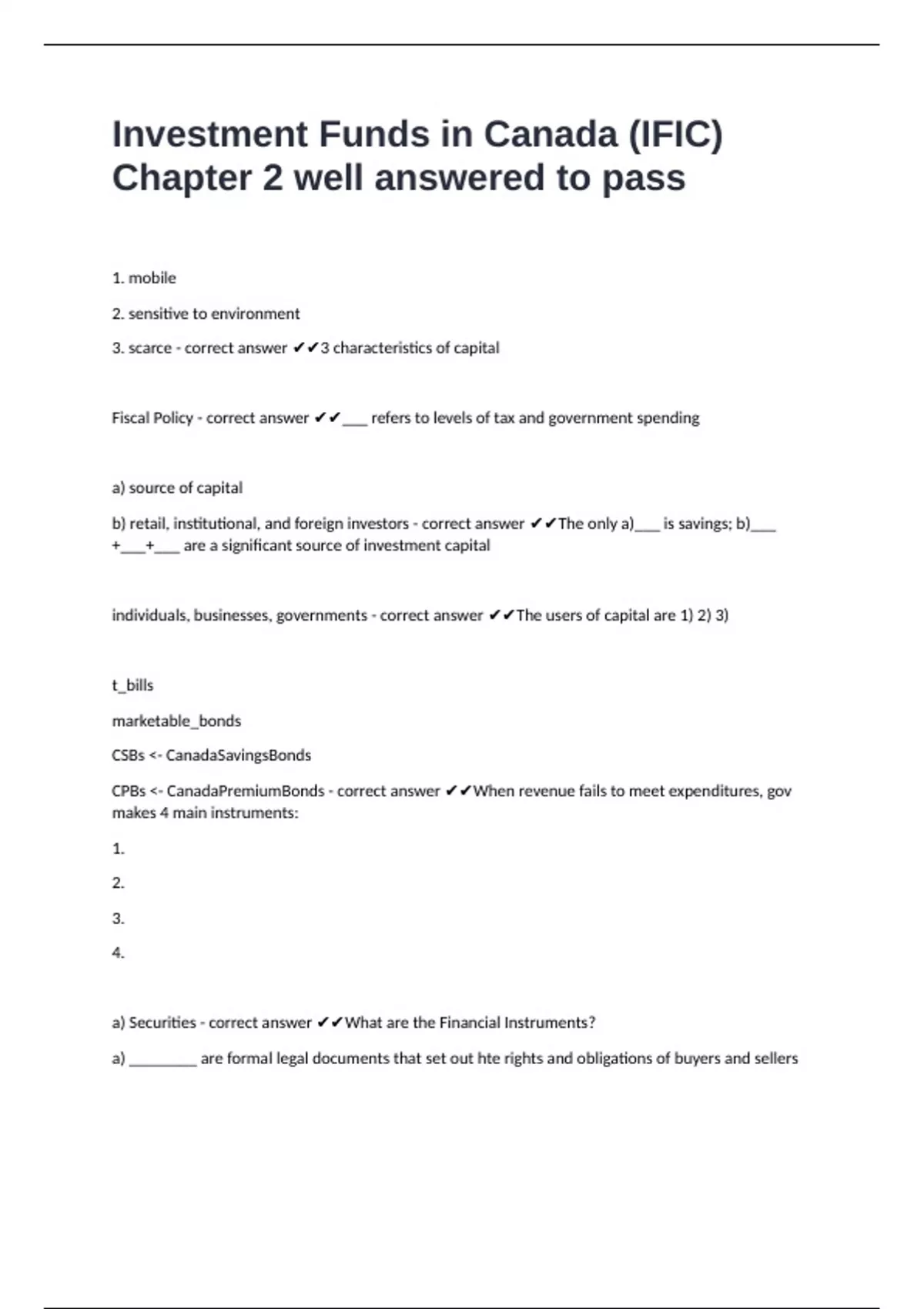 a) Securities - correct answer ✔✔What are the Financial Instruments?