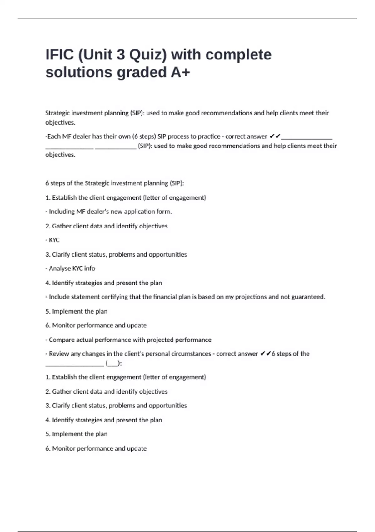 -Each MF dealer has their own (6 steps) SIP process to practice - correct answer ✔✔_______________