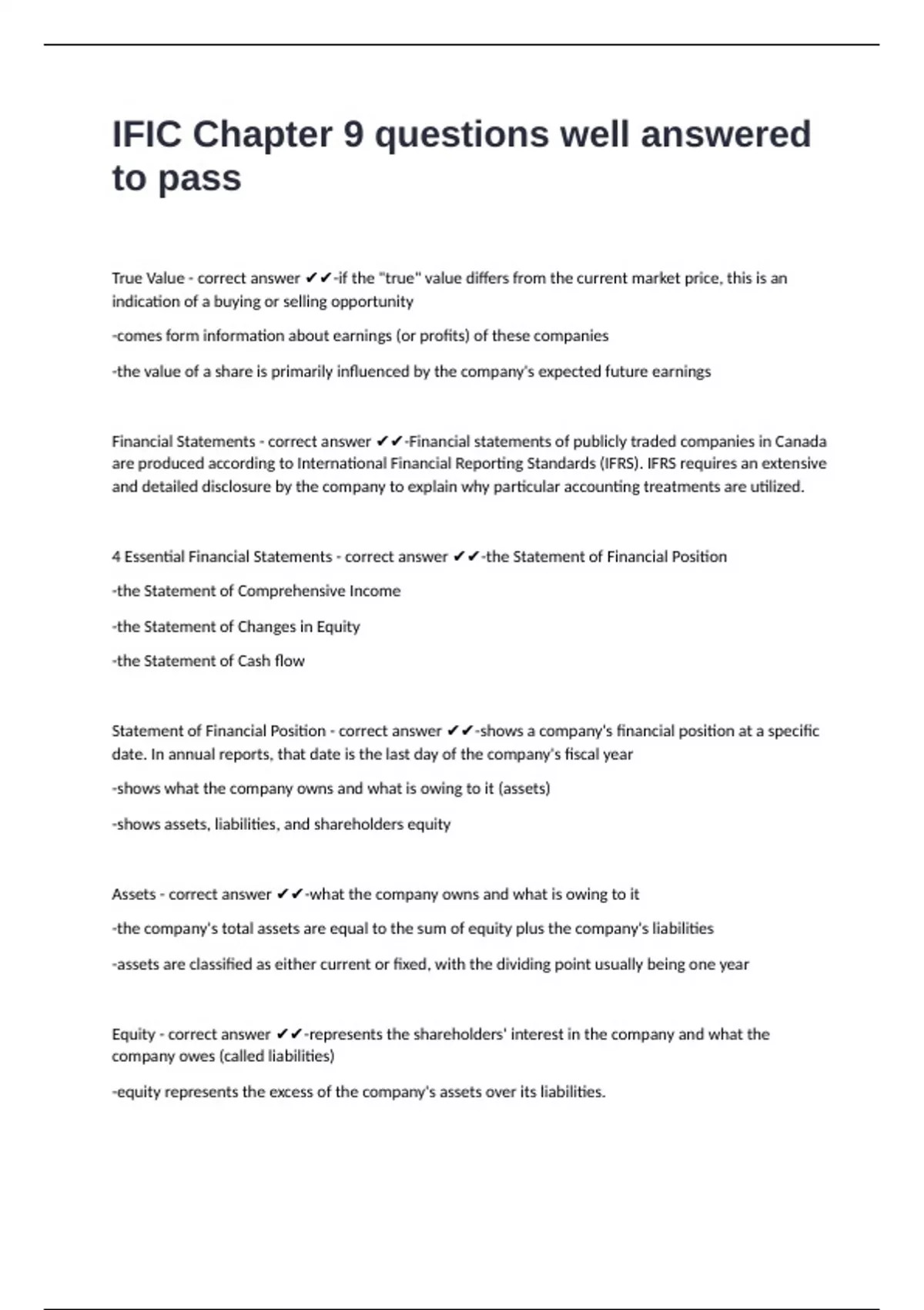 4 Essential Financial Statements - correct answer ✔✔-the Statement of Financial Position