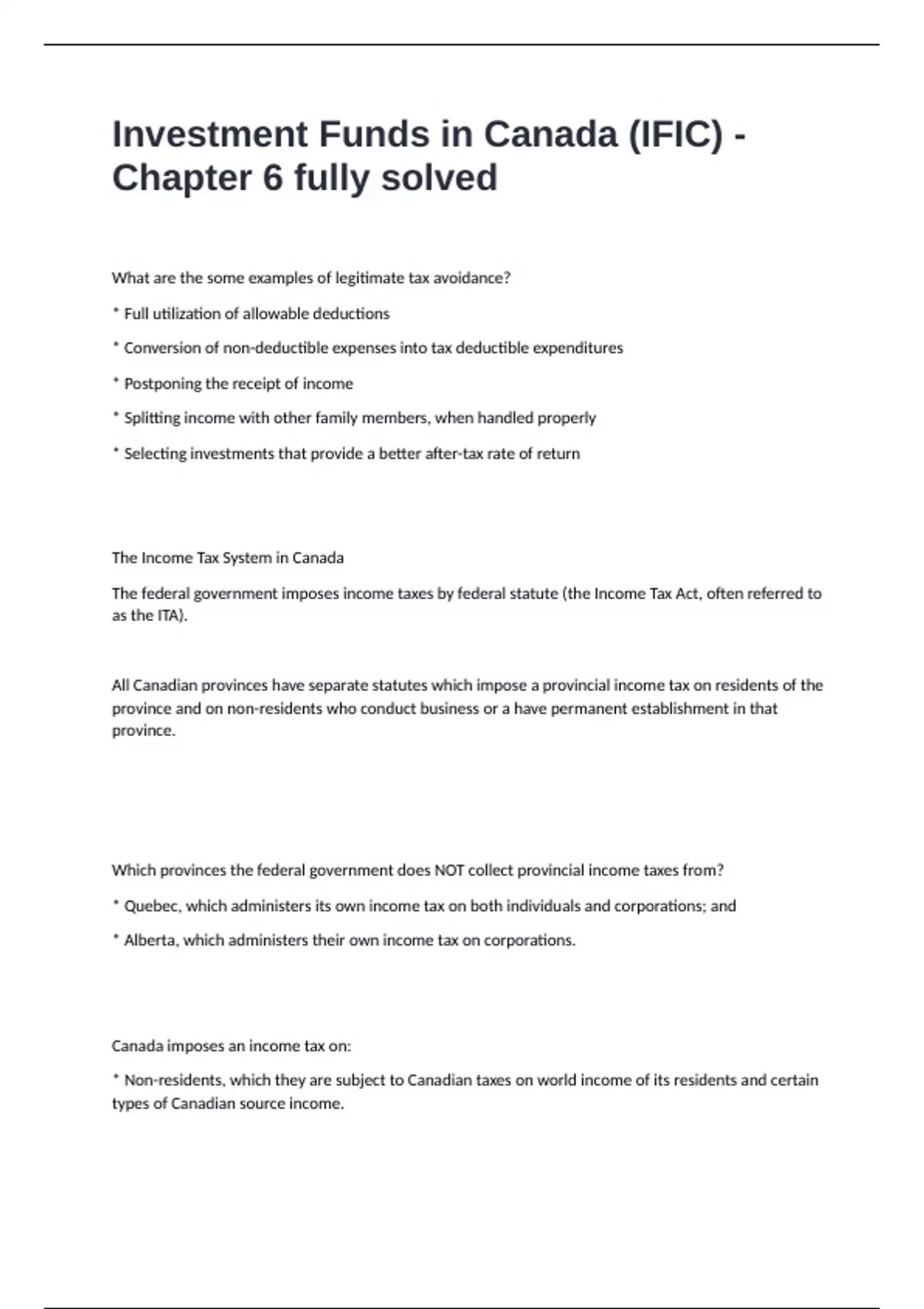 * Non-residents, which they are subject to Canadian taxes on world income of its residents and certain