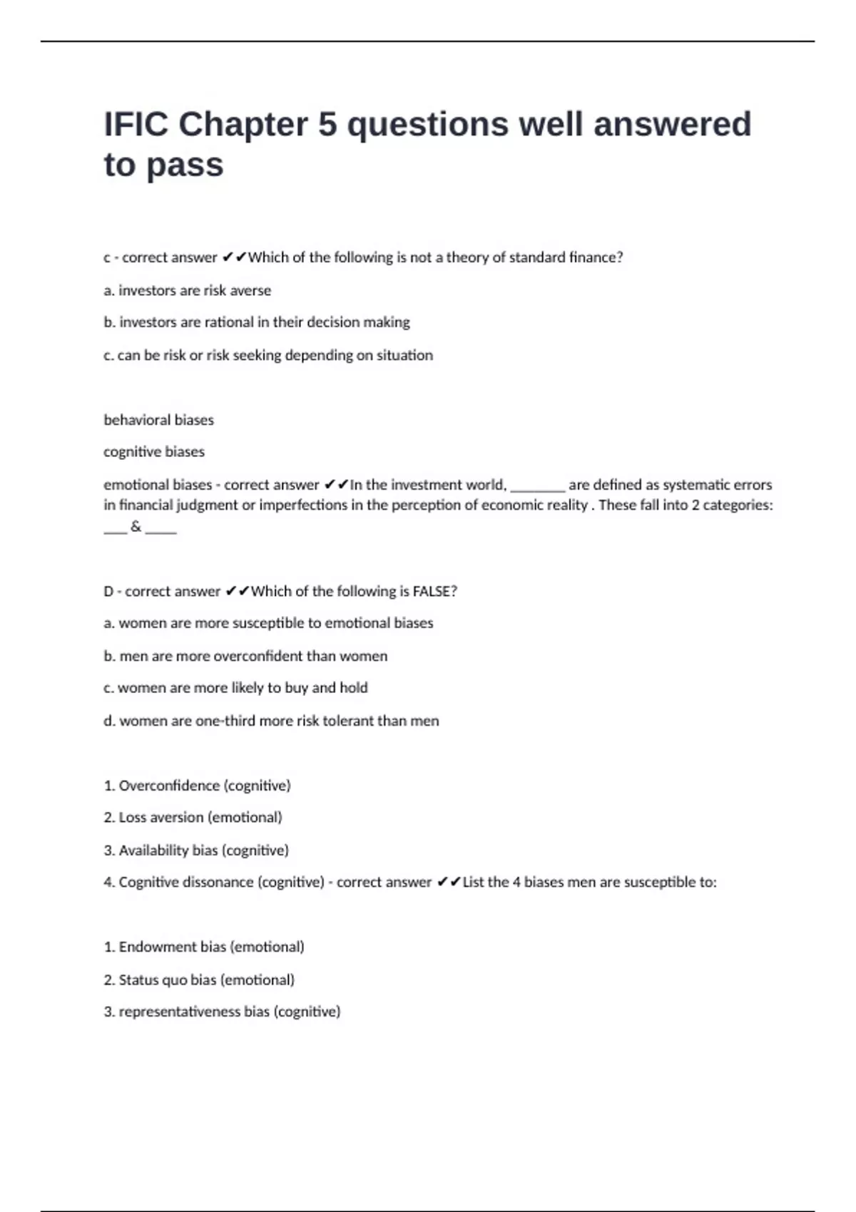 4. Cognitive dissonance (cognitive) - correct answer ✔✔List the 4 biases men are susceptible to: