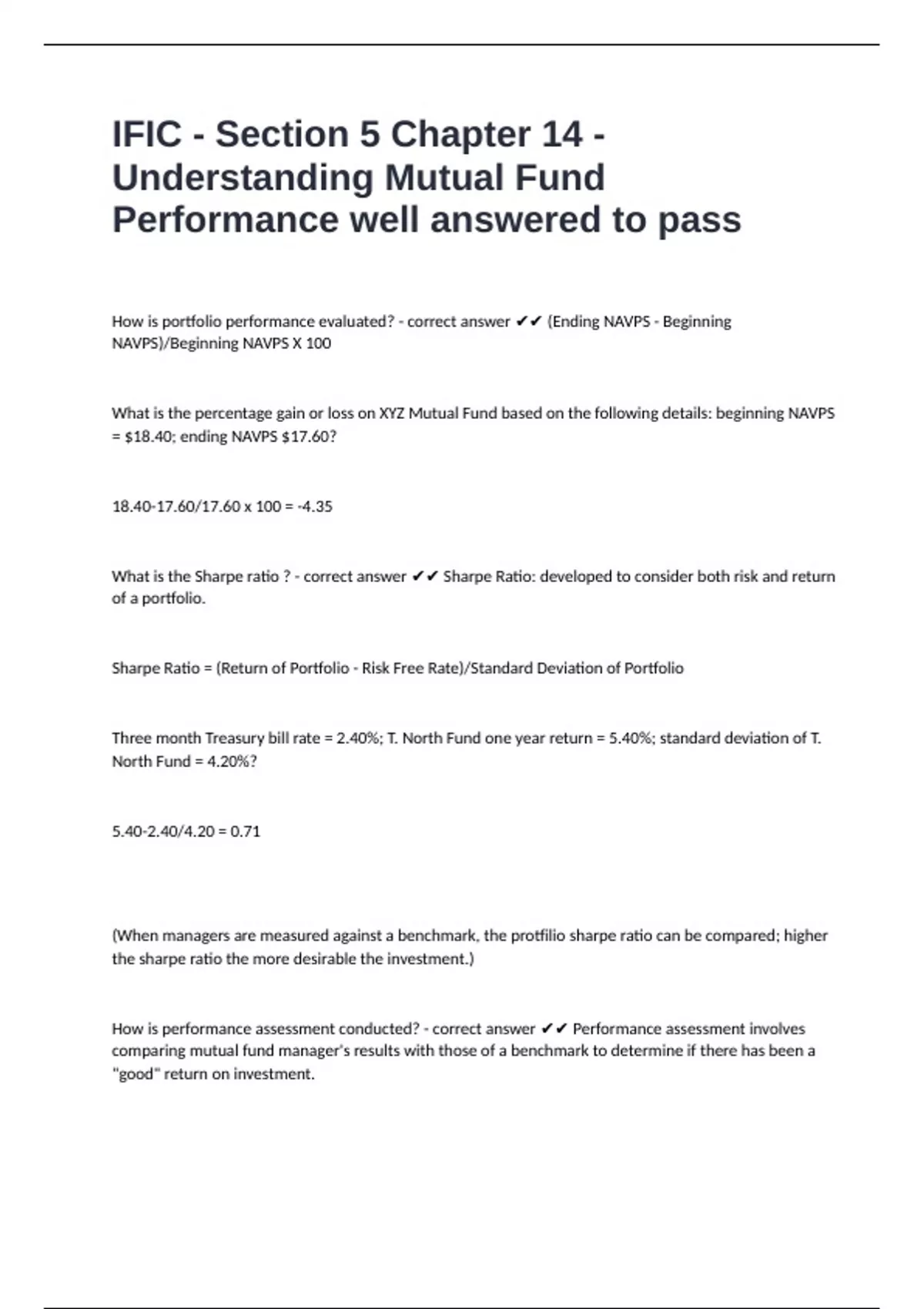 How is portfolio performance evaluated? - correct answer ✔✔ (Ending NAVPS - Beginning