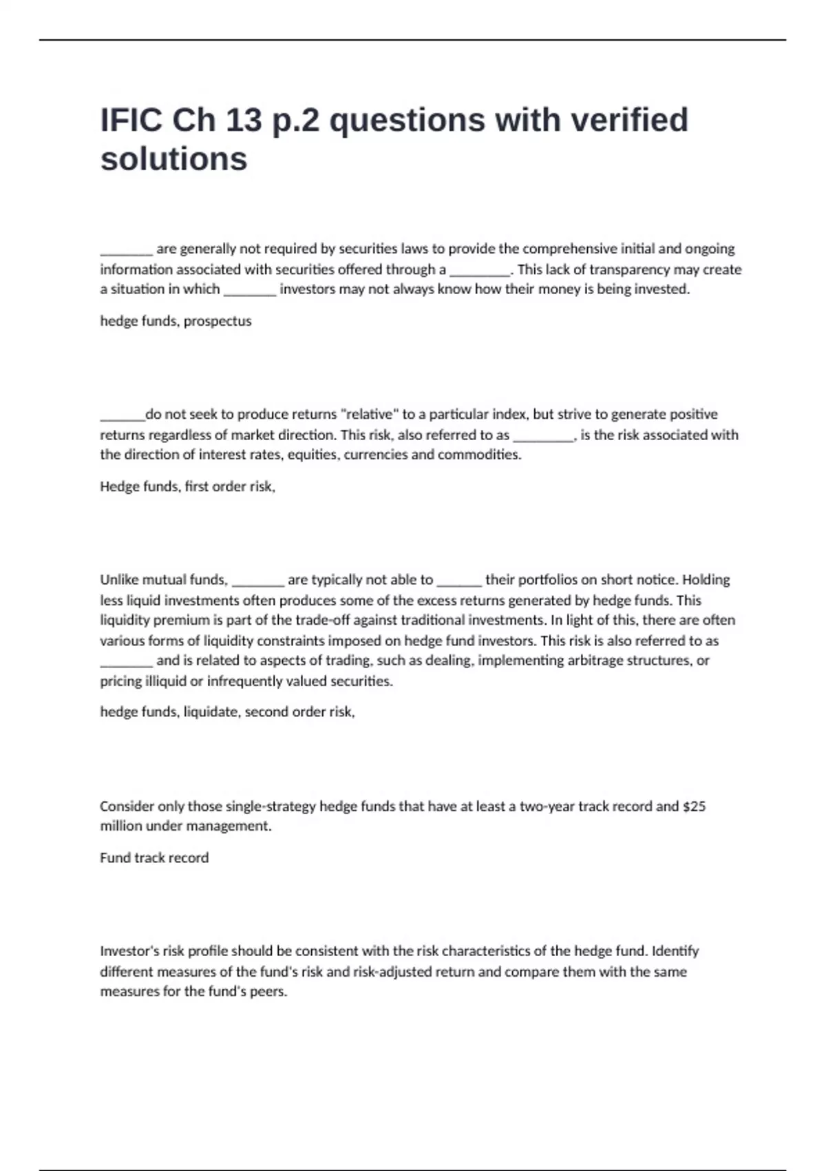 Investor's risk profile should be consistent with the risk characteristics of the hedge fund. Identify