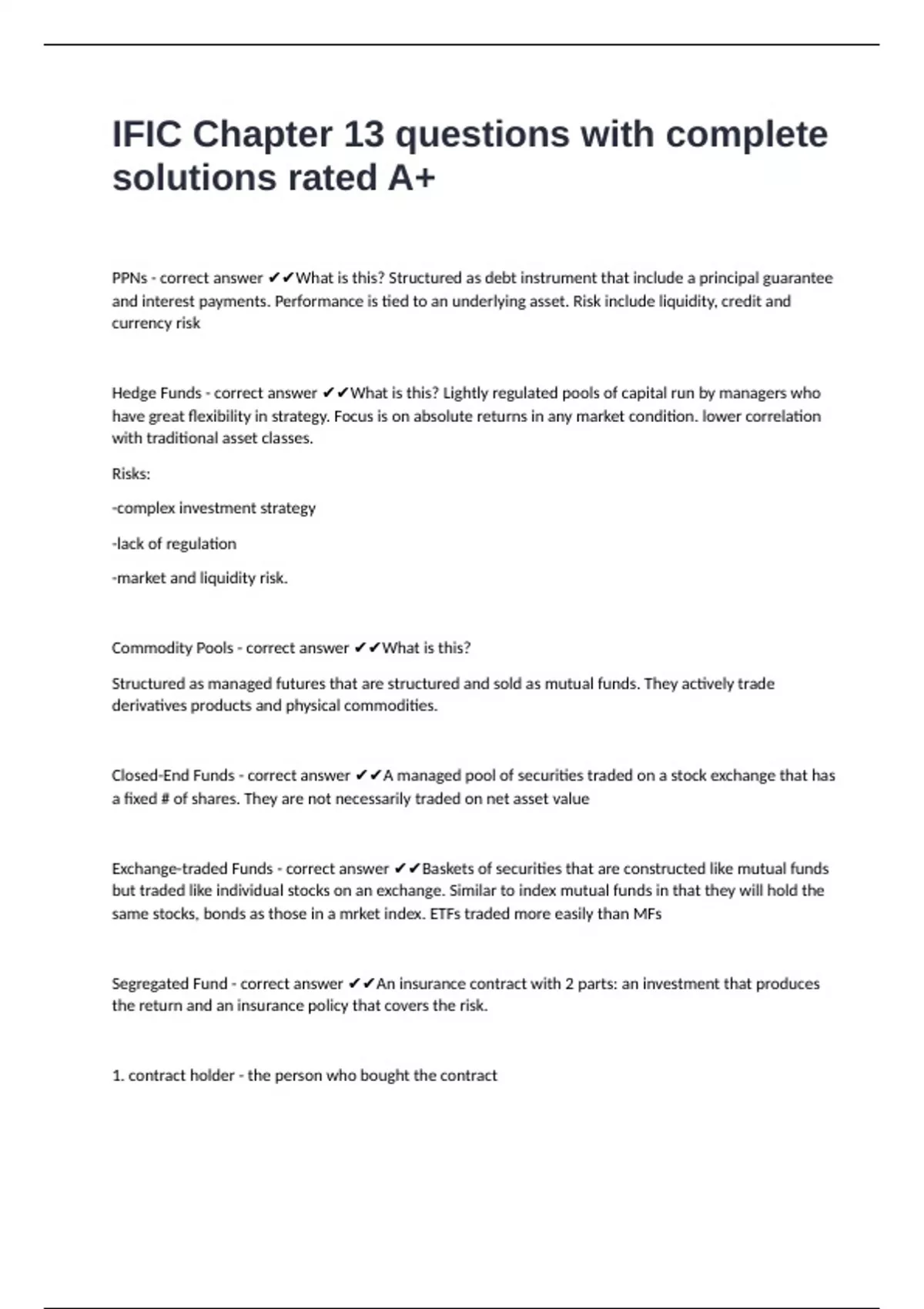 Segregated Fund - correct answer ✔✔An insurance contract with 2 parts: an investment that produces
