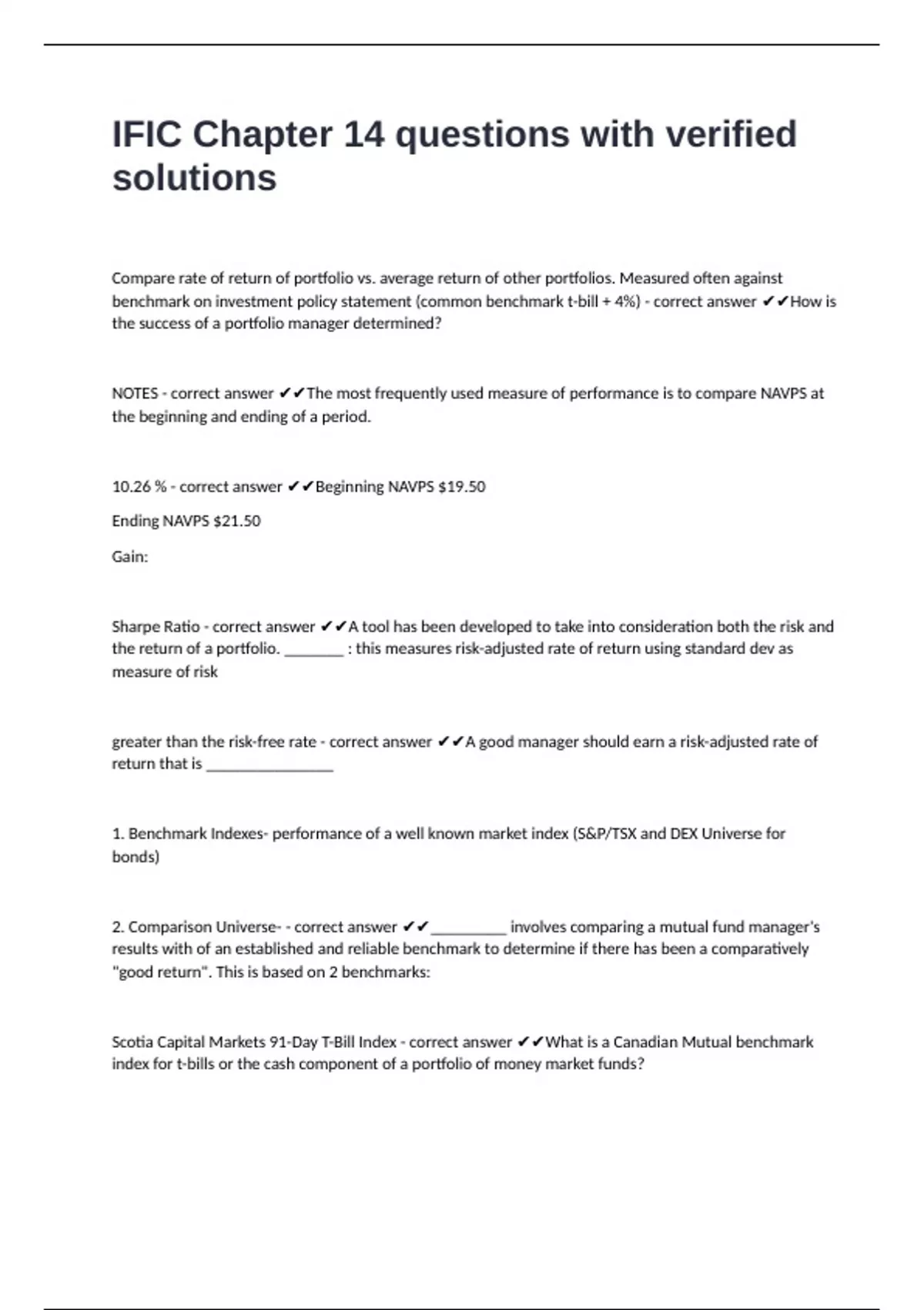 NOTES - correct answer ✔✔The most frequently used measure of performance is to compare NAVPS at