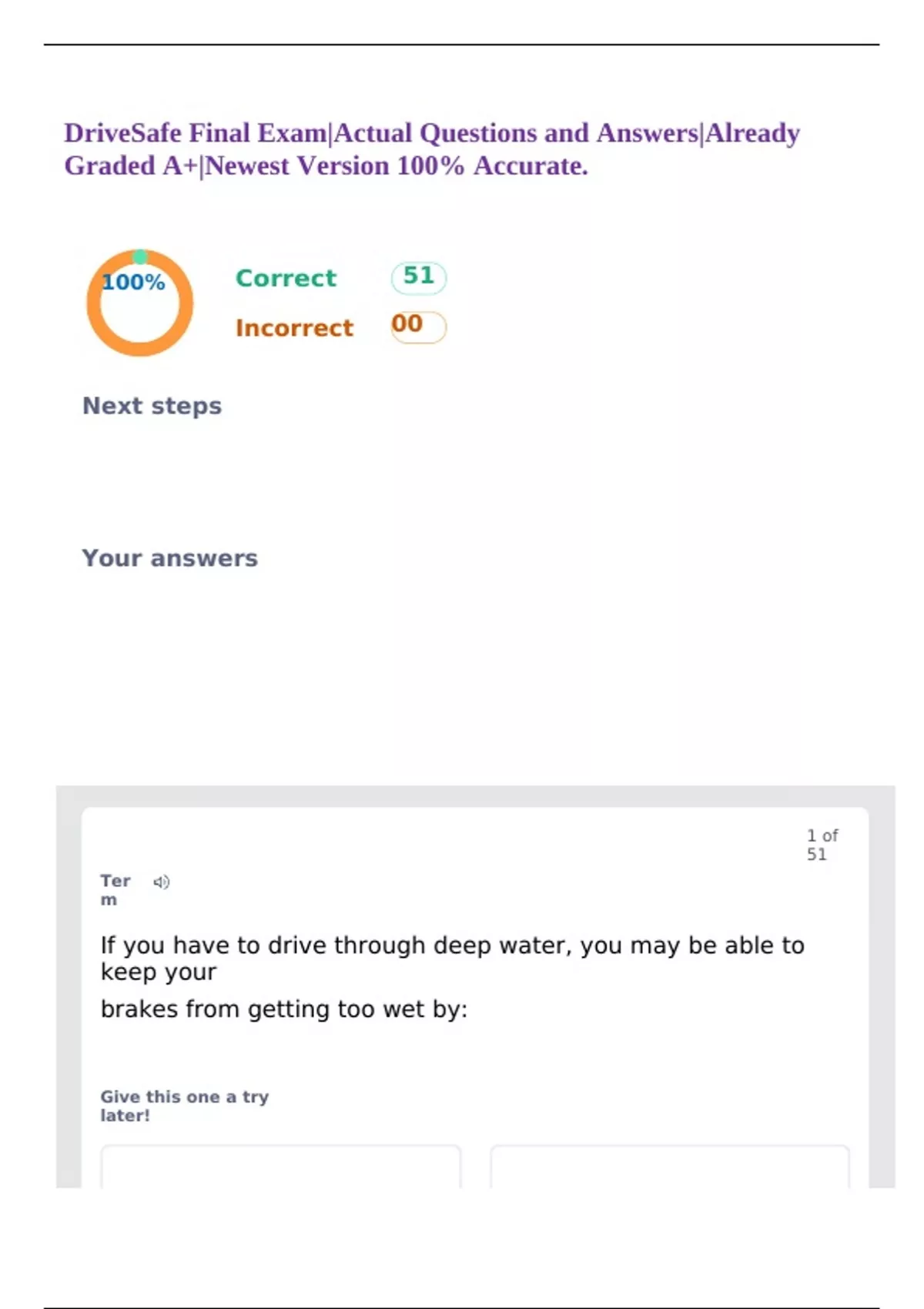 DriveSafe Final Exam|Actual Questions and Answers|Already Graded A+|Newest Version 100% Accurate. DriveSafe Final Exam