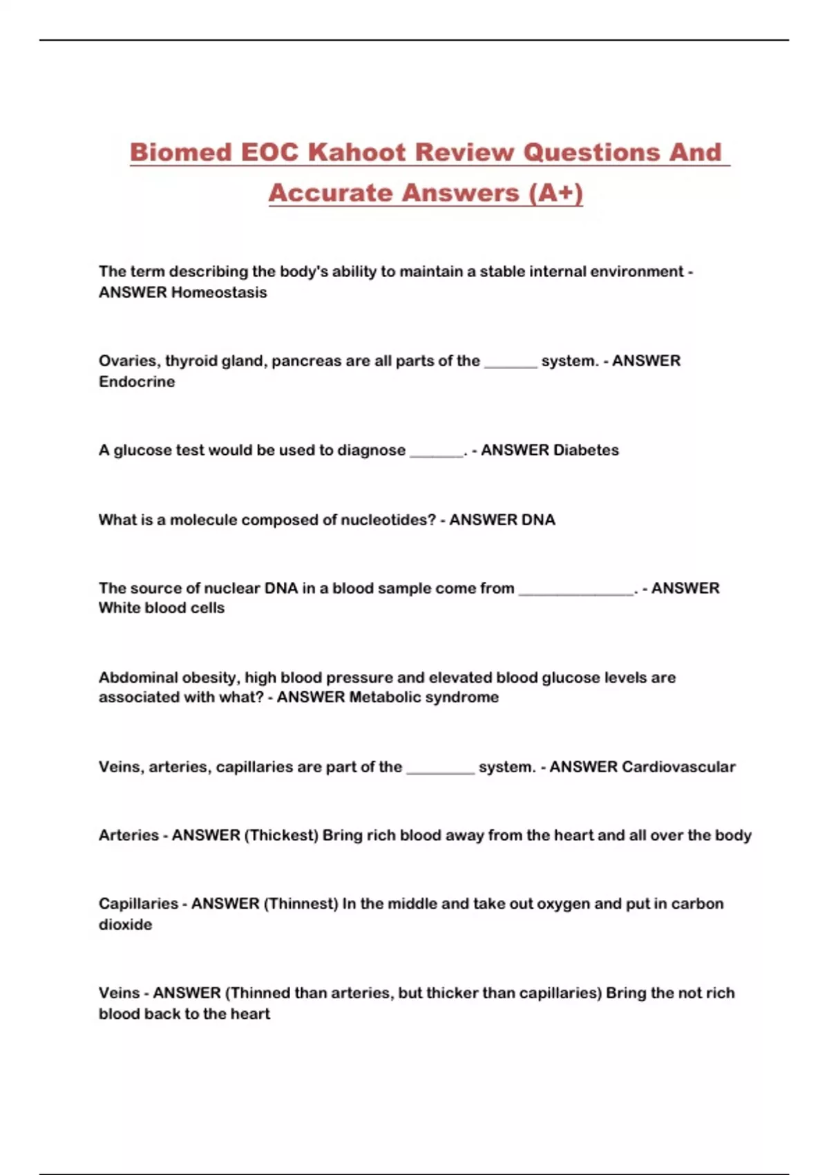 Biomed EOC Kahoot Review Questions And Accurate Answers (A+)...