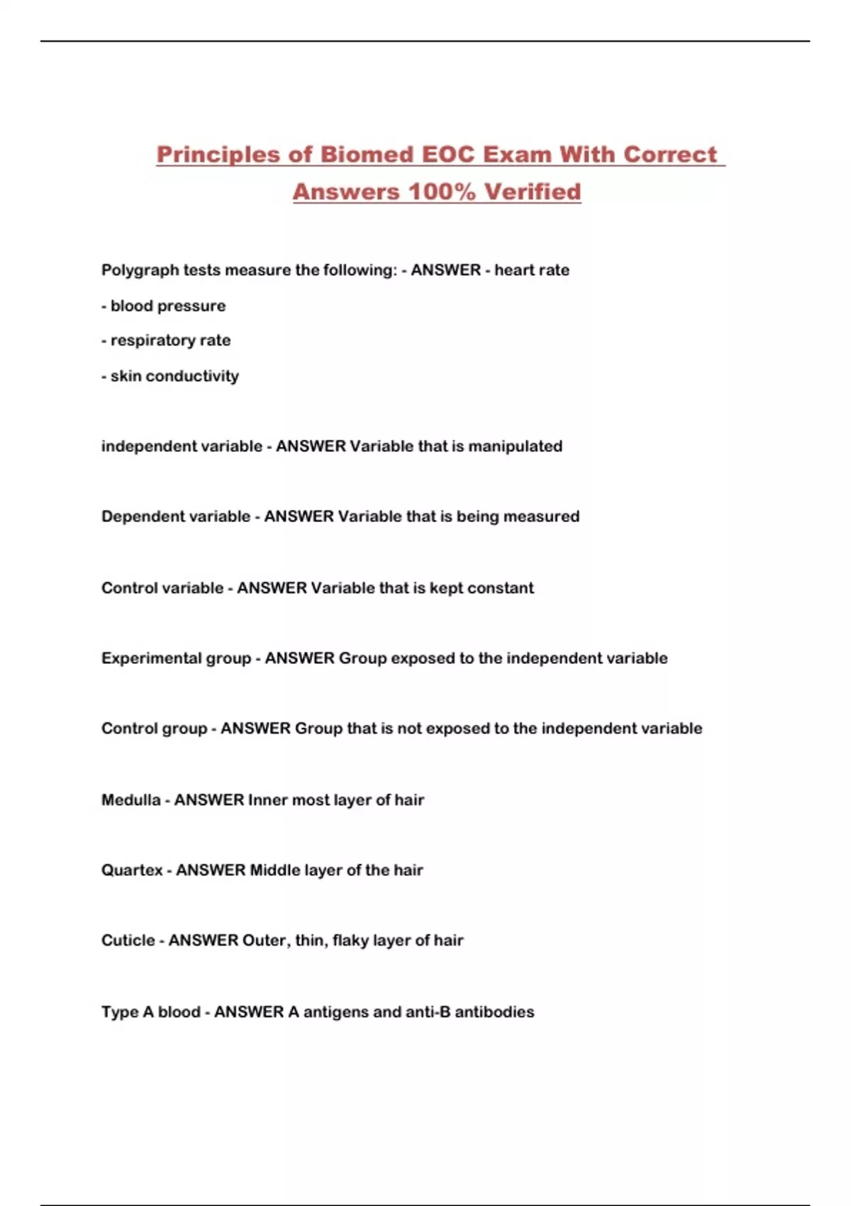 Principles of Biomed EOC Exam With Correct