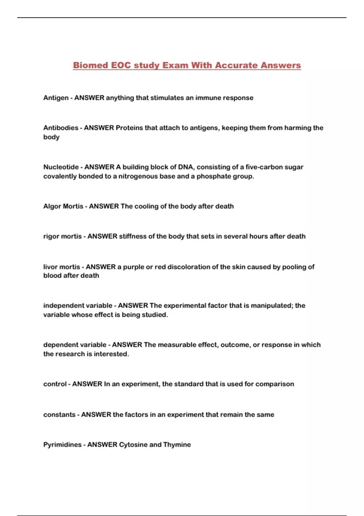 Biomed EOC study Exam With Accurate Answers