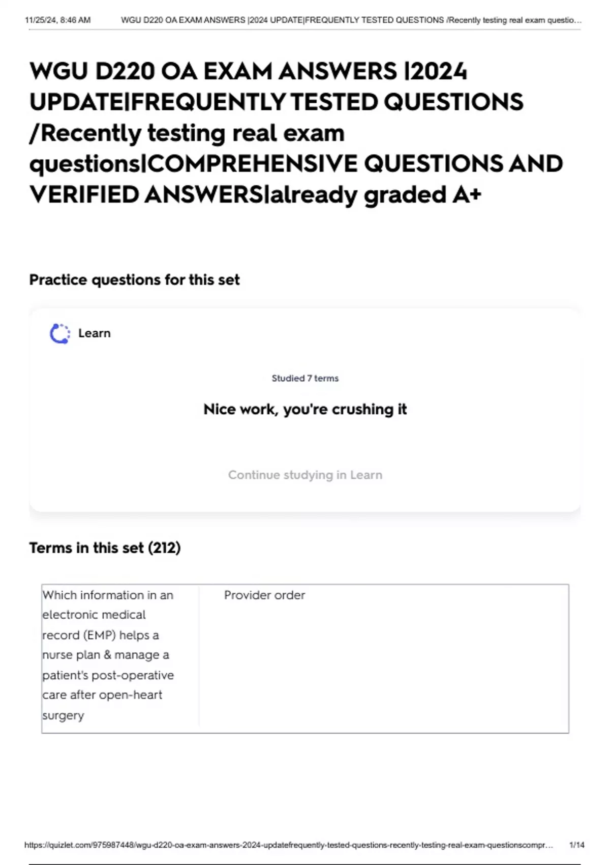 , 11/25/24, 8:46 AM WGU D220 OA EXAM ANSWERS |2024 UPDATE|FREQUENTLY TESTED QUESTIONS /Recently testing real exam questio…
