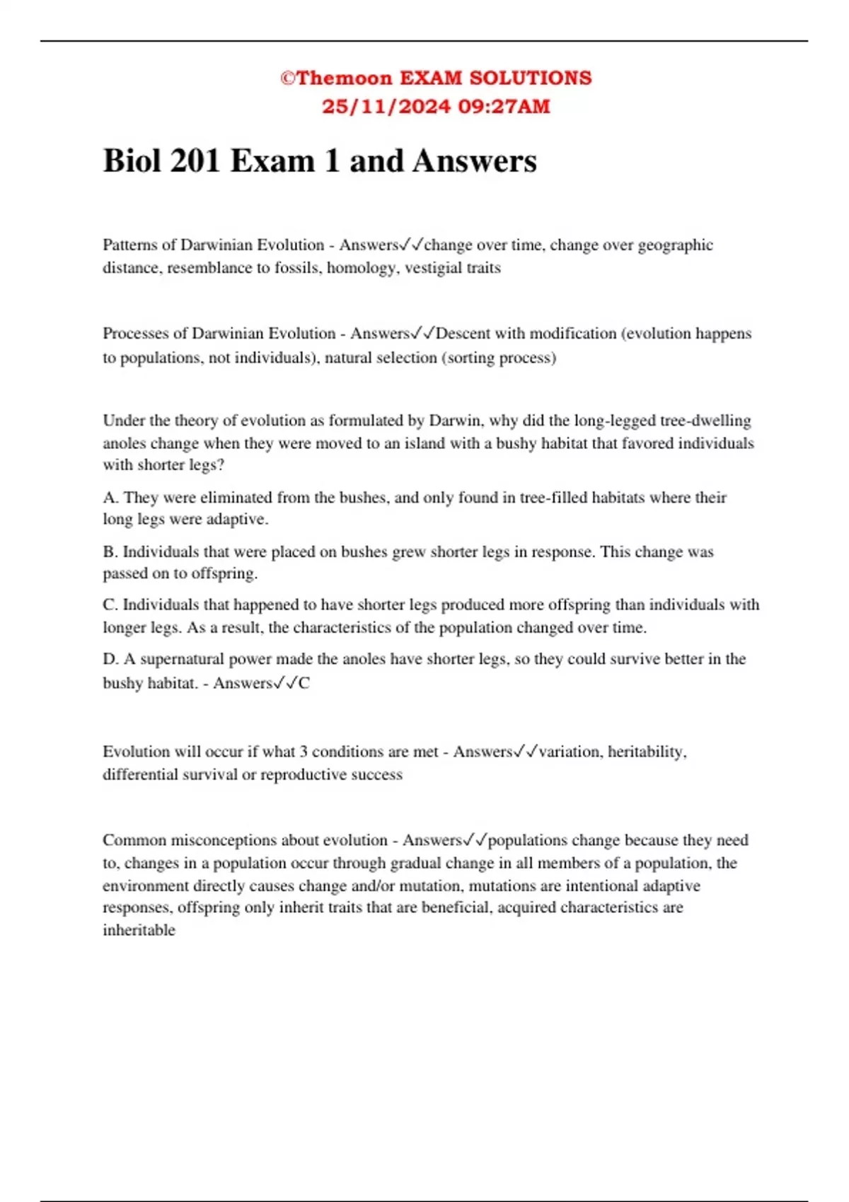 Common misconceptions about evolution - Answers✓✓populations change because they need