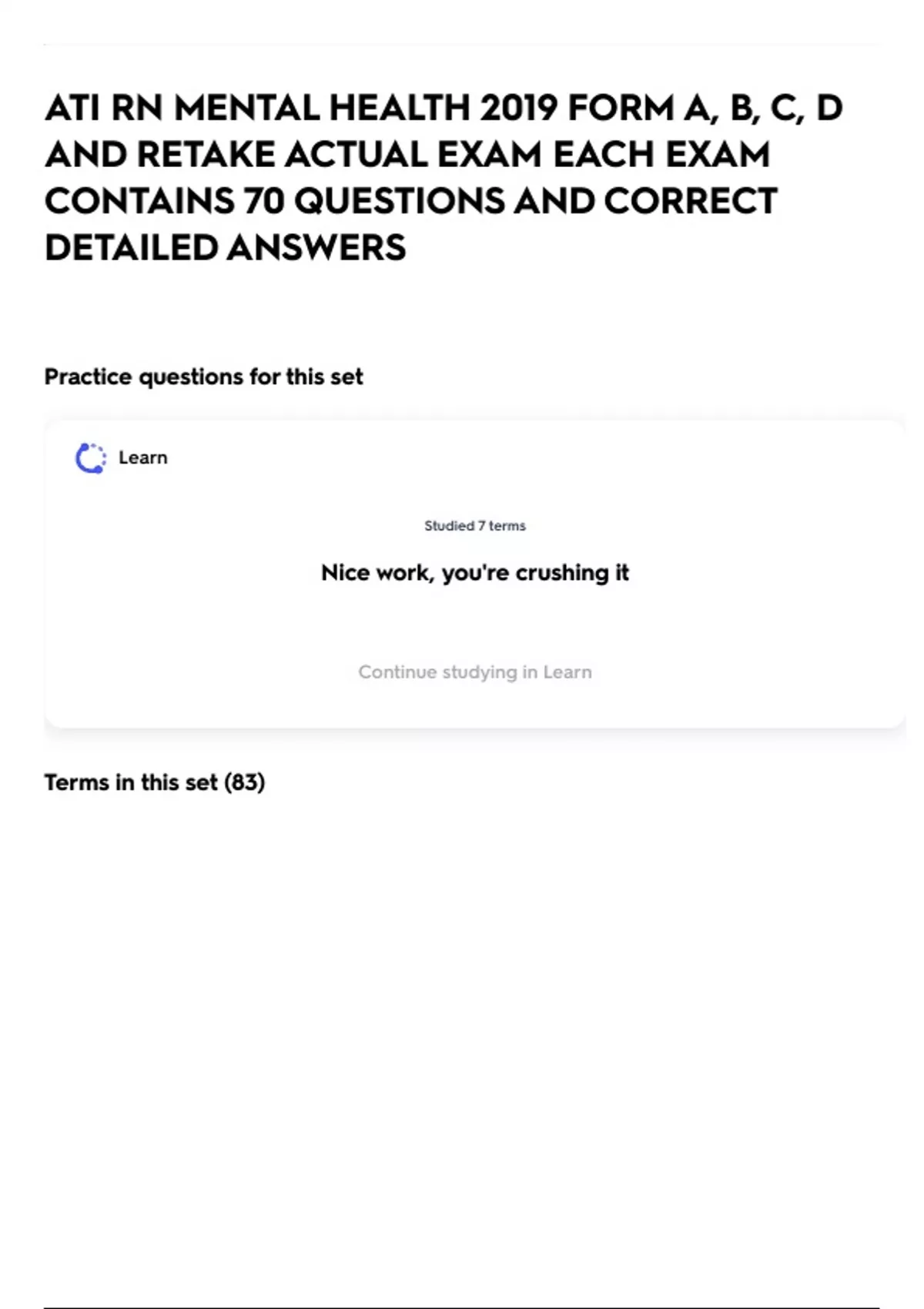 further teaching? ATI RN Mental Health Nursing Modules Ch. 1