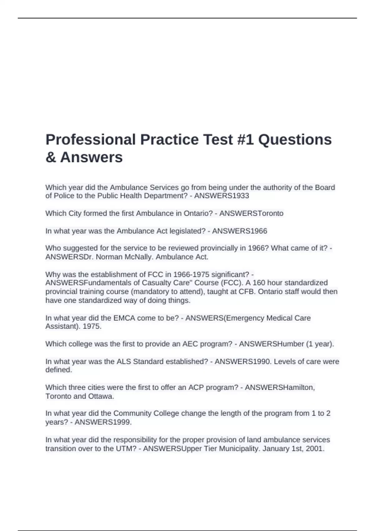 ANSWERSDr. Norman McNally. Ambulance Act.