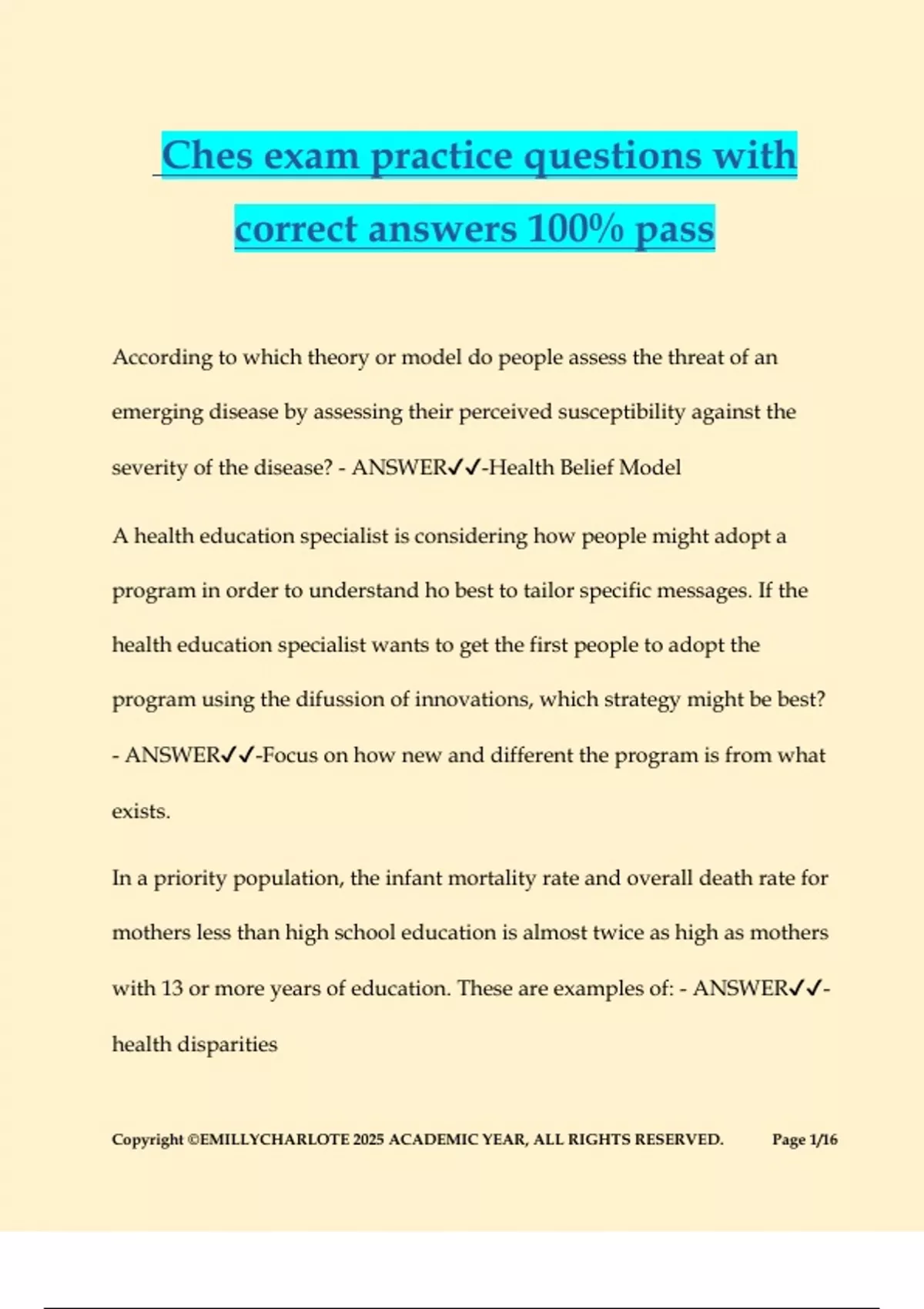 correct answers 100% pass