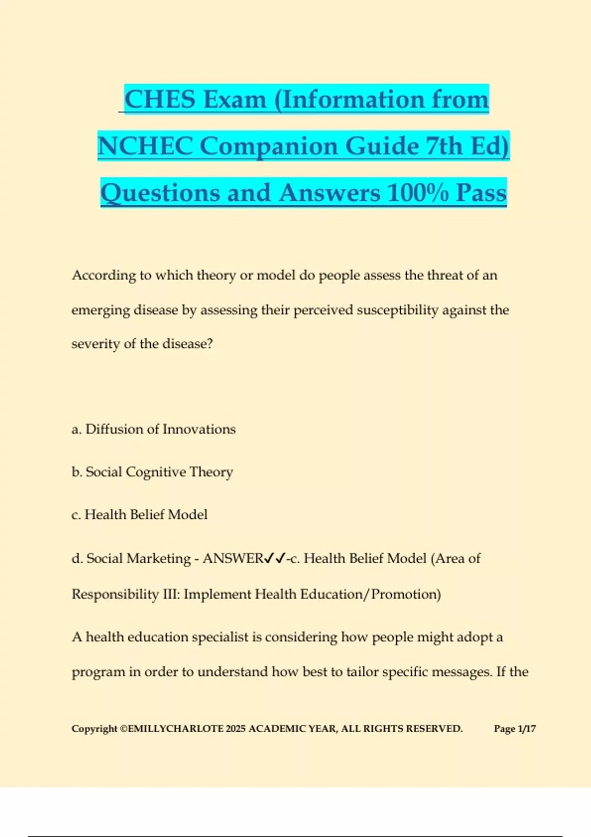d. Social Marketing - ANSWER✔✔-c. Health Belief Model (Area of