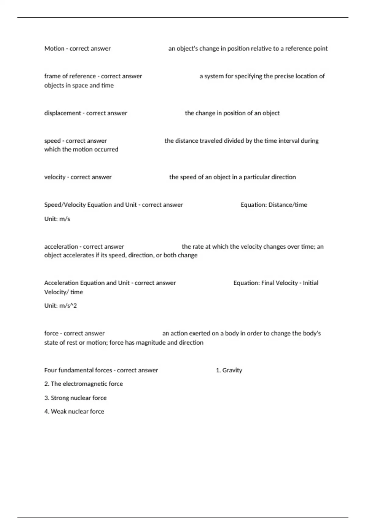 Acceleration Equation and Unit - correct answer Equation: Final Velocity - Initial