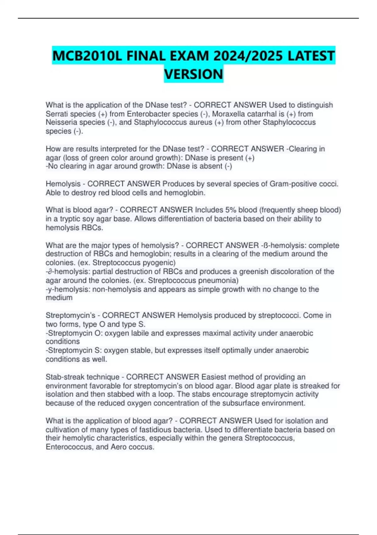 Streptomycin’s - CORRECT ANSWER Hemolysis produced by streptococci. Come in