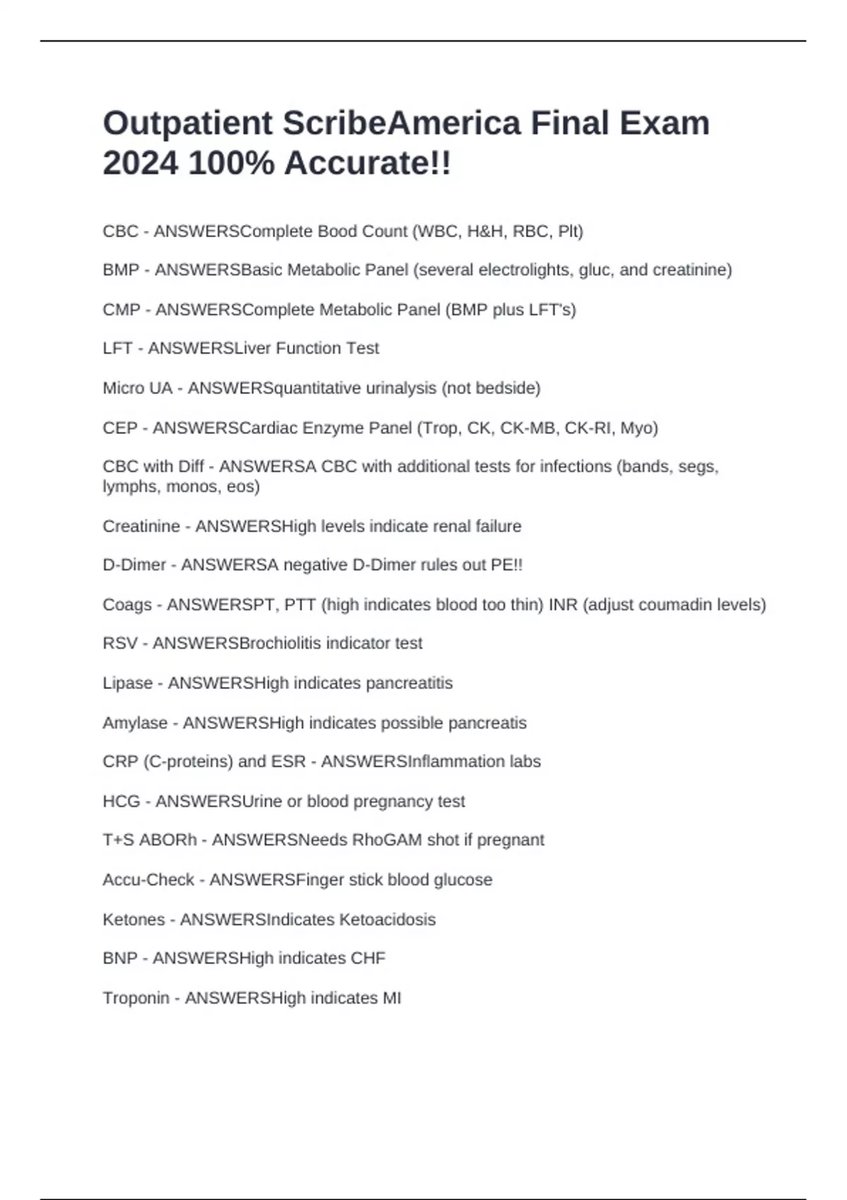 D-Dimer - ANSWERSA negative D-Dimer rules out PE!!