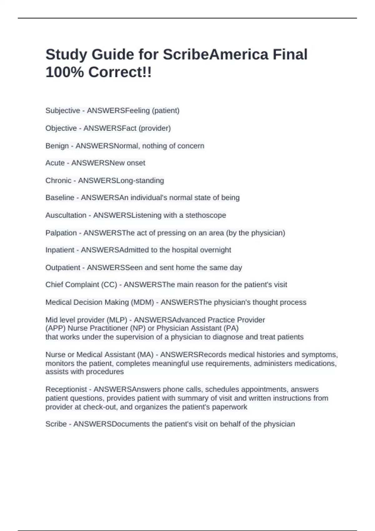 Scribes CAN... - ANSWERS-Document the history, physical exam, results, procedures,