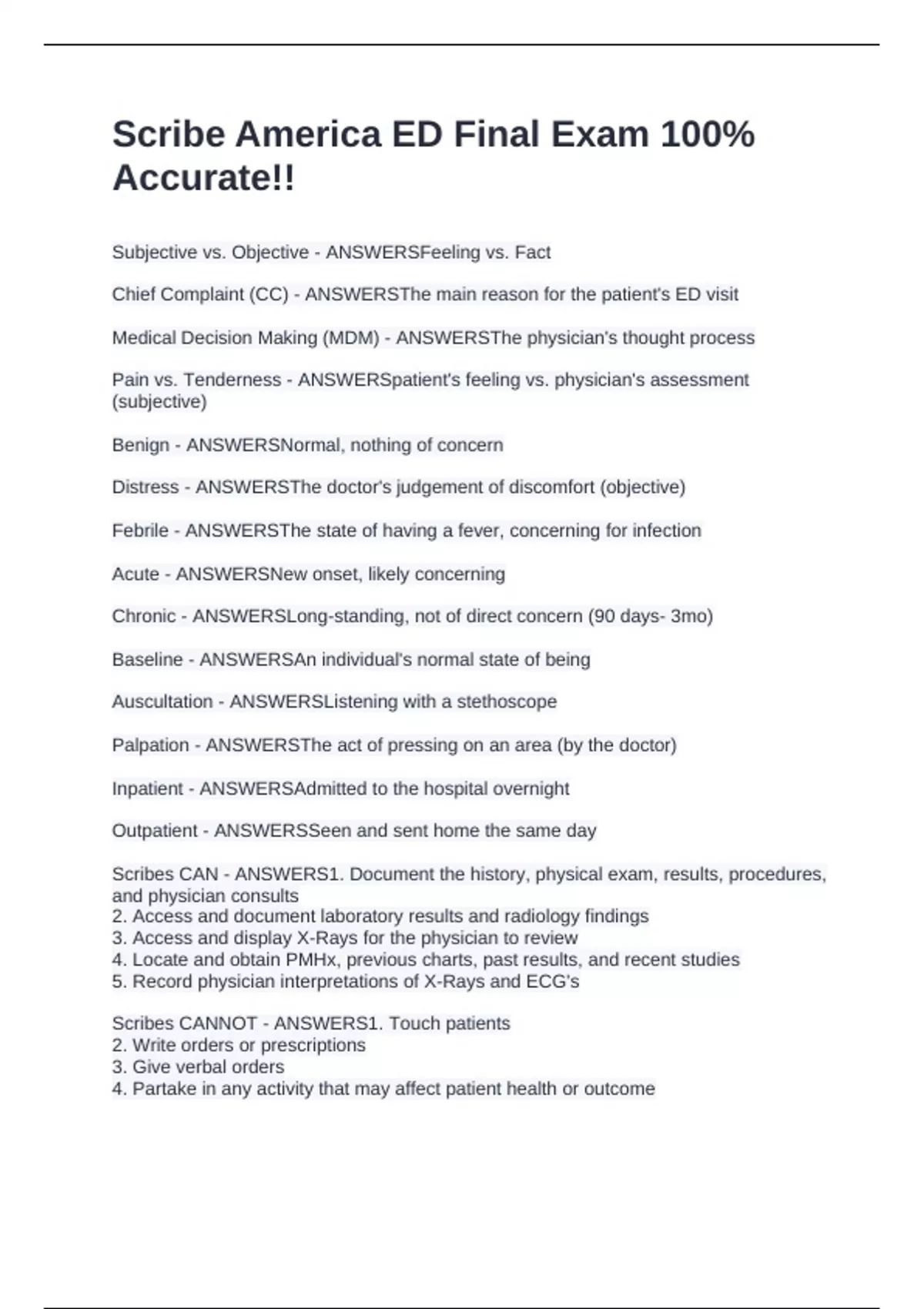 Scribes CAN - ANSWERS1. Document the history, physical exam, results, procedures,