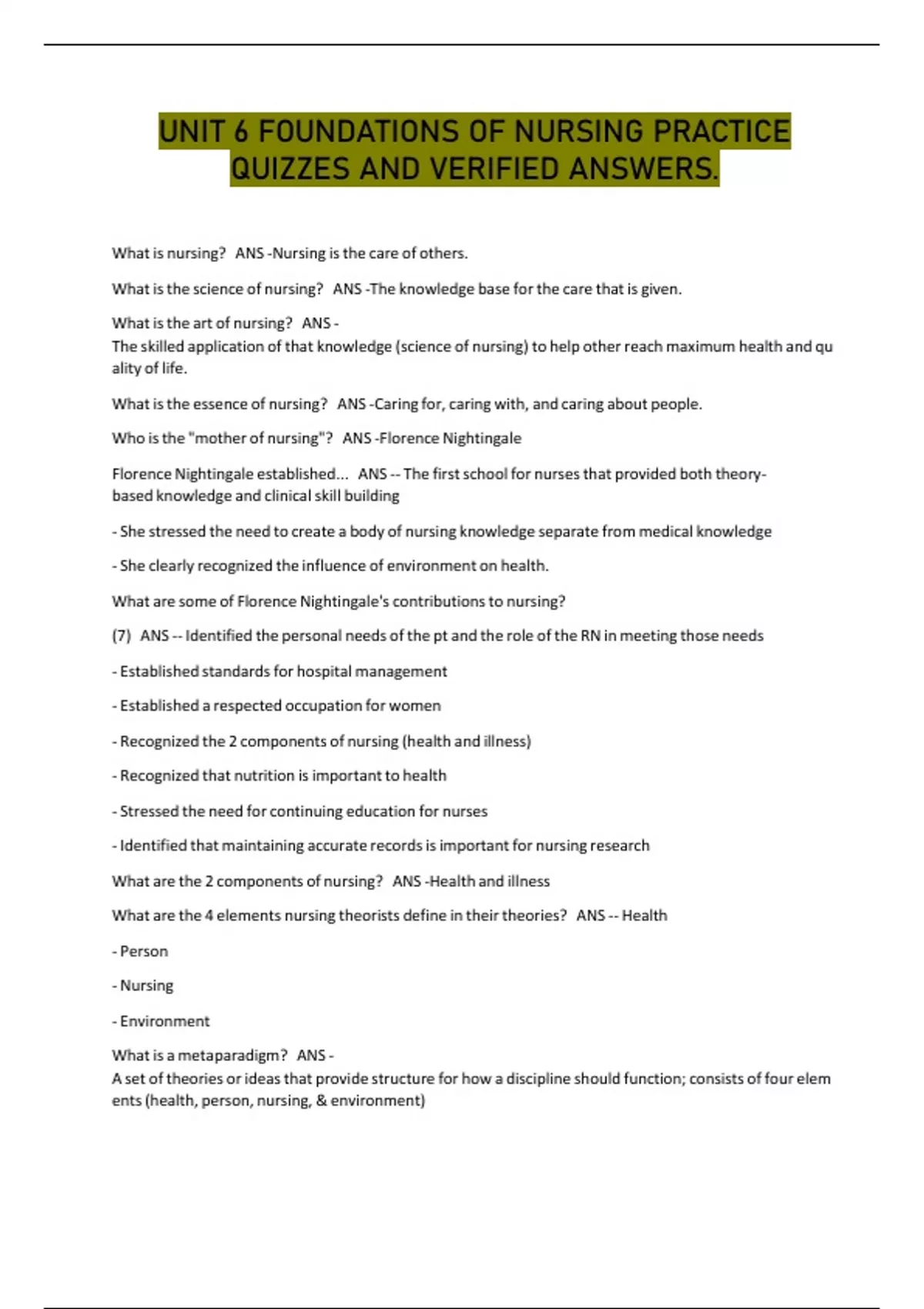 QUIZZES AND VERIFIED ANSWERS.