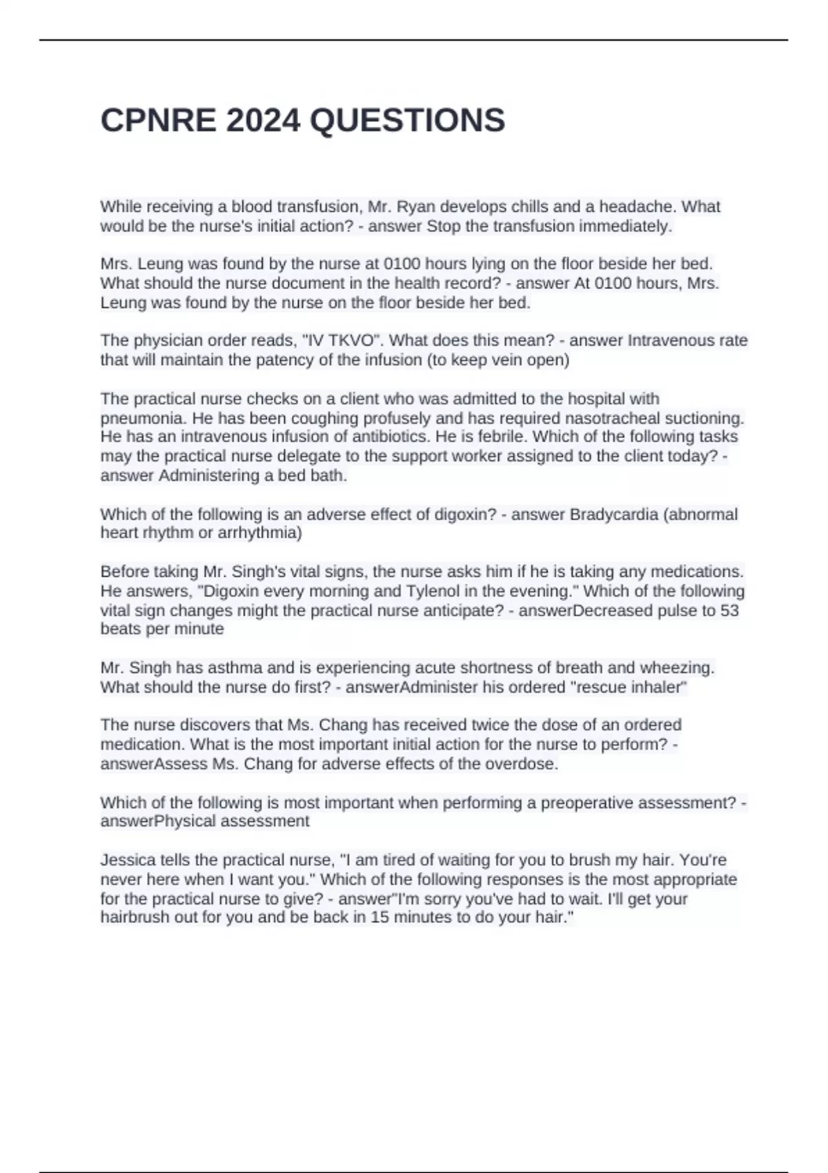 CPNRE 2024 QUESTIONS
