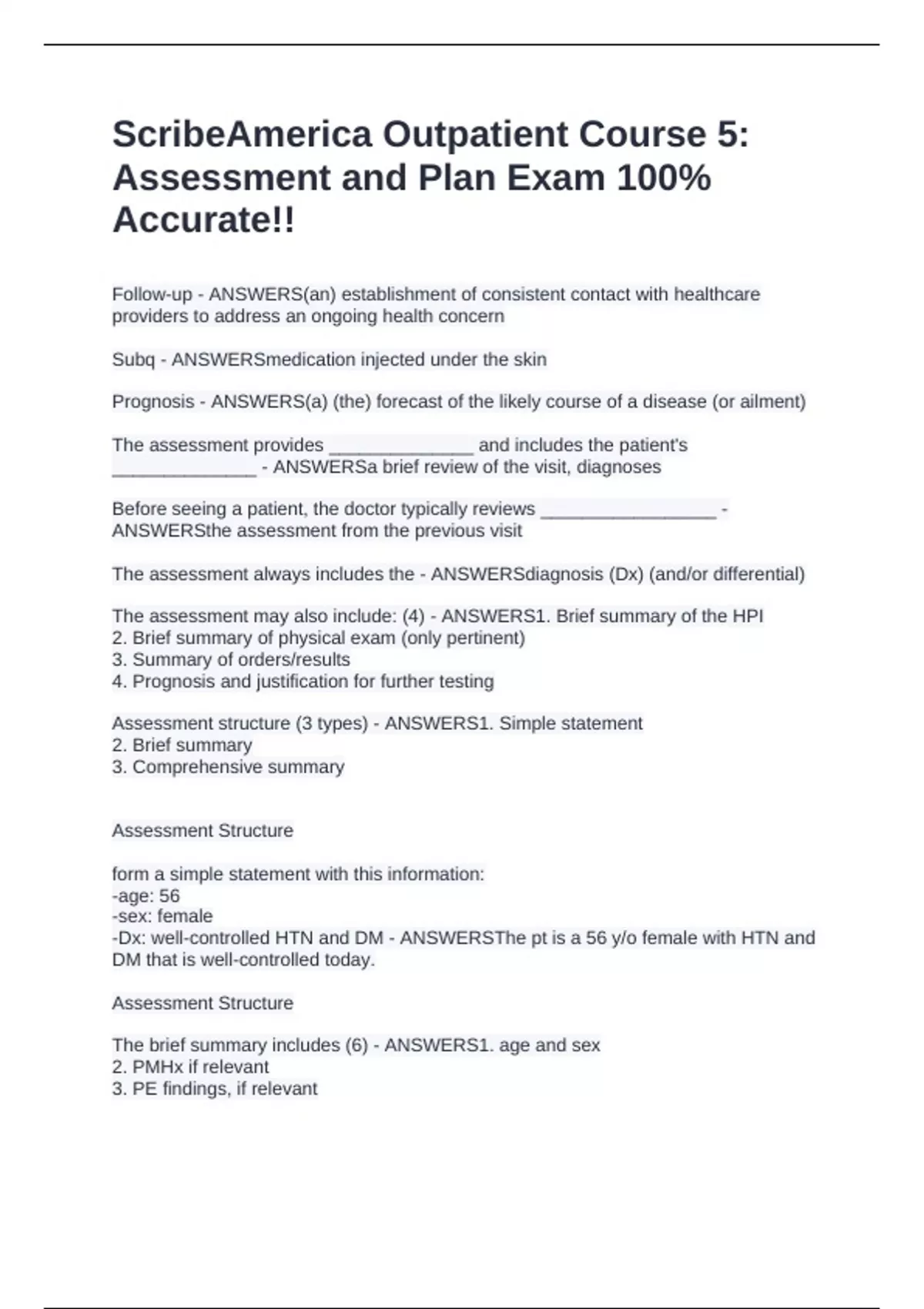 ScribeAmerica Outpatient Course 5: Assessment and Plan Exam 100% Accurate!!