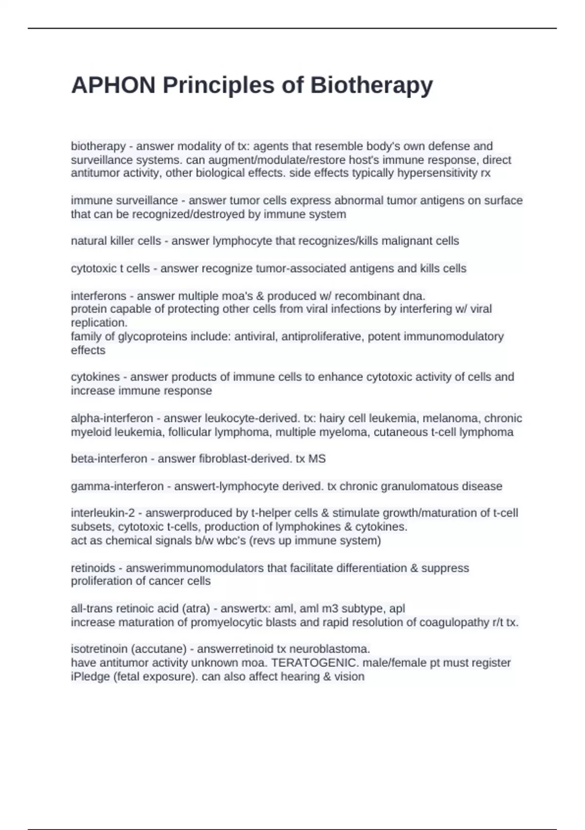 retinoids - answerimmunomodulators that facilitate differentiation & suppress