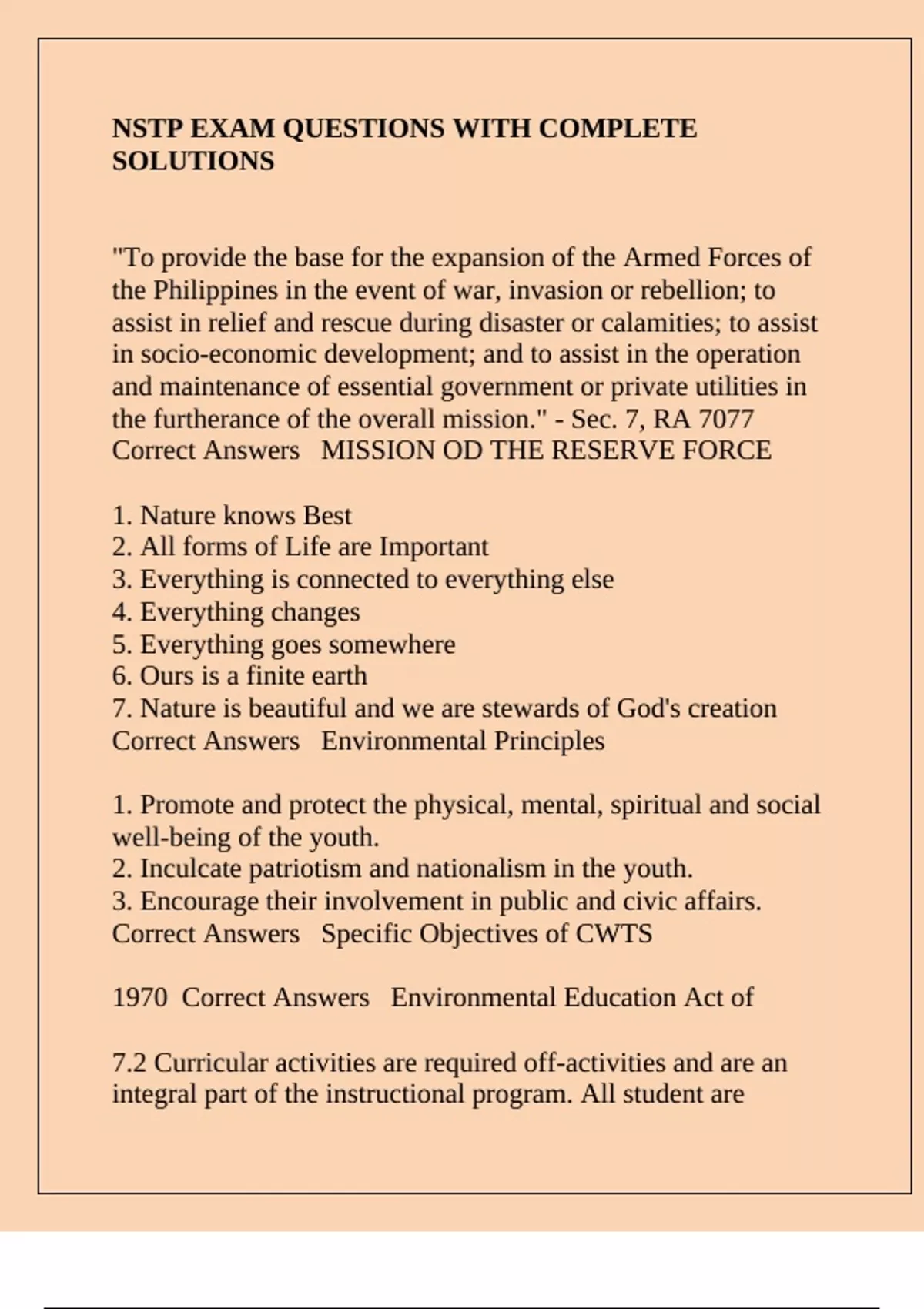 NSTP EXAM QUESTIONS WITH COMPLETE