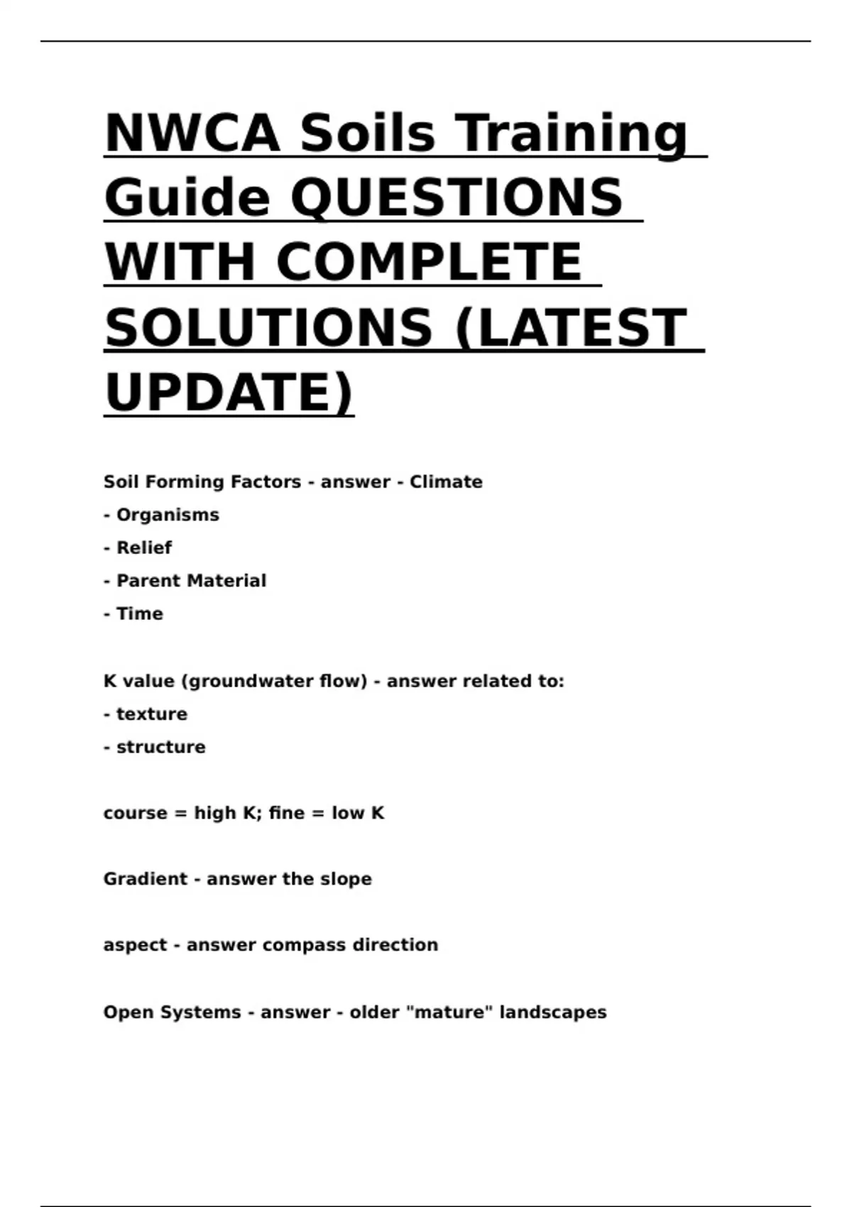 NWCA Soils Training Guide QUESTIONS WITH COMPLETE SOLUTIONS (LATEST UPDATE).