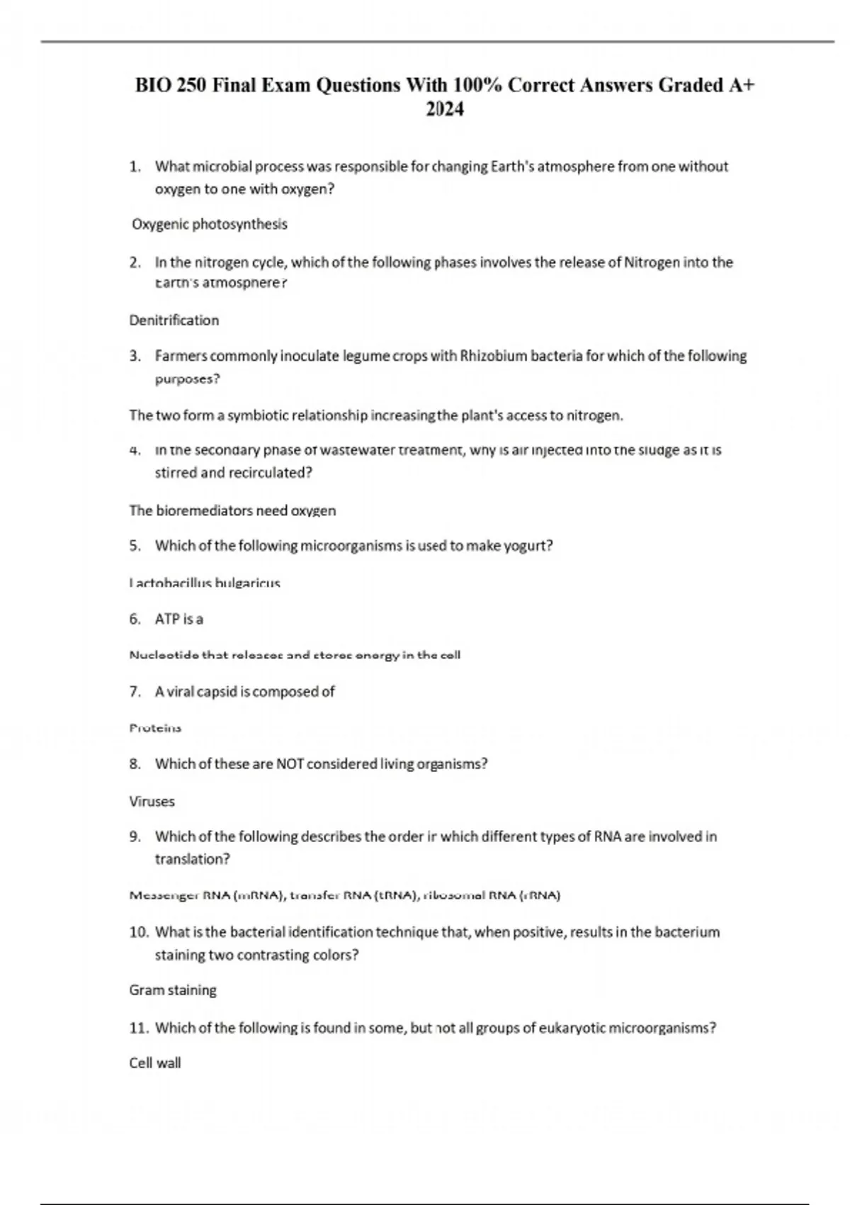 BIO 250 Final Exam Questions With 100% Correct Answers Graded A+ 2024