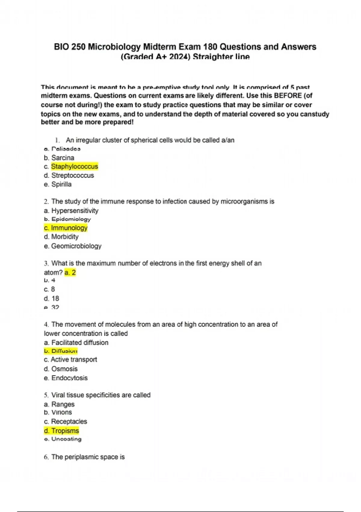 BIO 250 Microbiology Midterm Exam 180 Questions and Answers (Graded A+ 2024) Straighter line