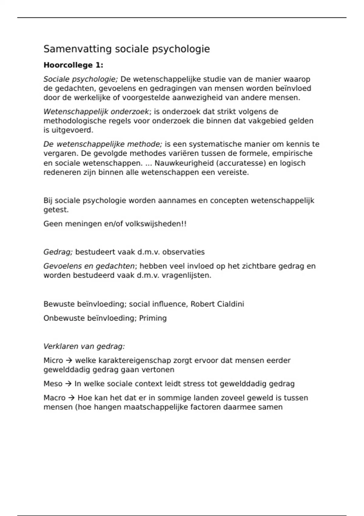 Samenvatting sociale psychologie